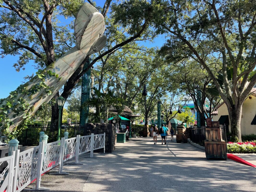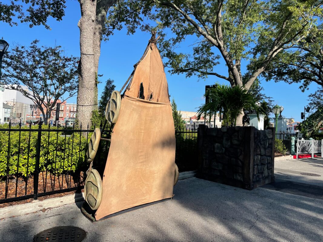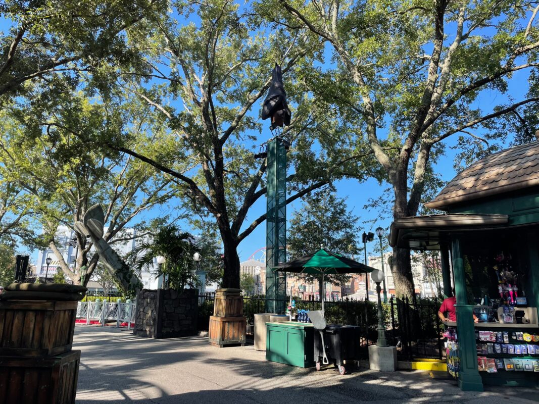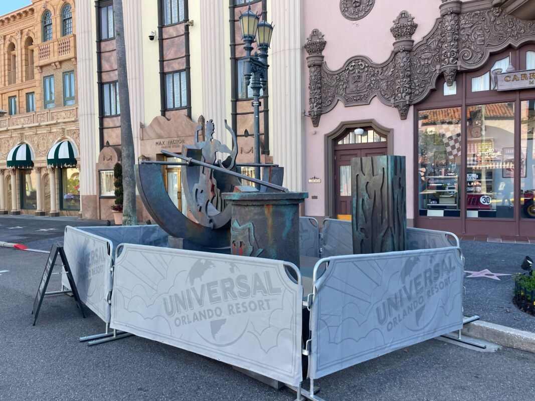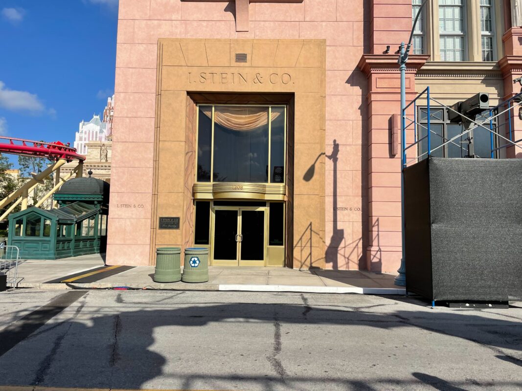 The Halloween Horror Nights Tribute Store will return to the J. Stein & Co. façade this season. The area in front of the building is clear for the temporary Halloween-themed façade to go up soon. It will be comic-themed.