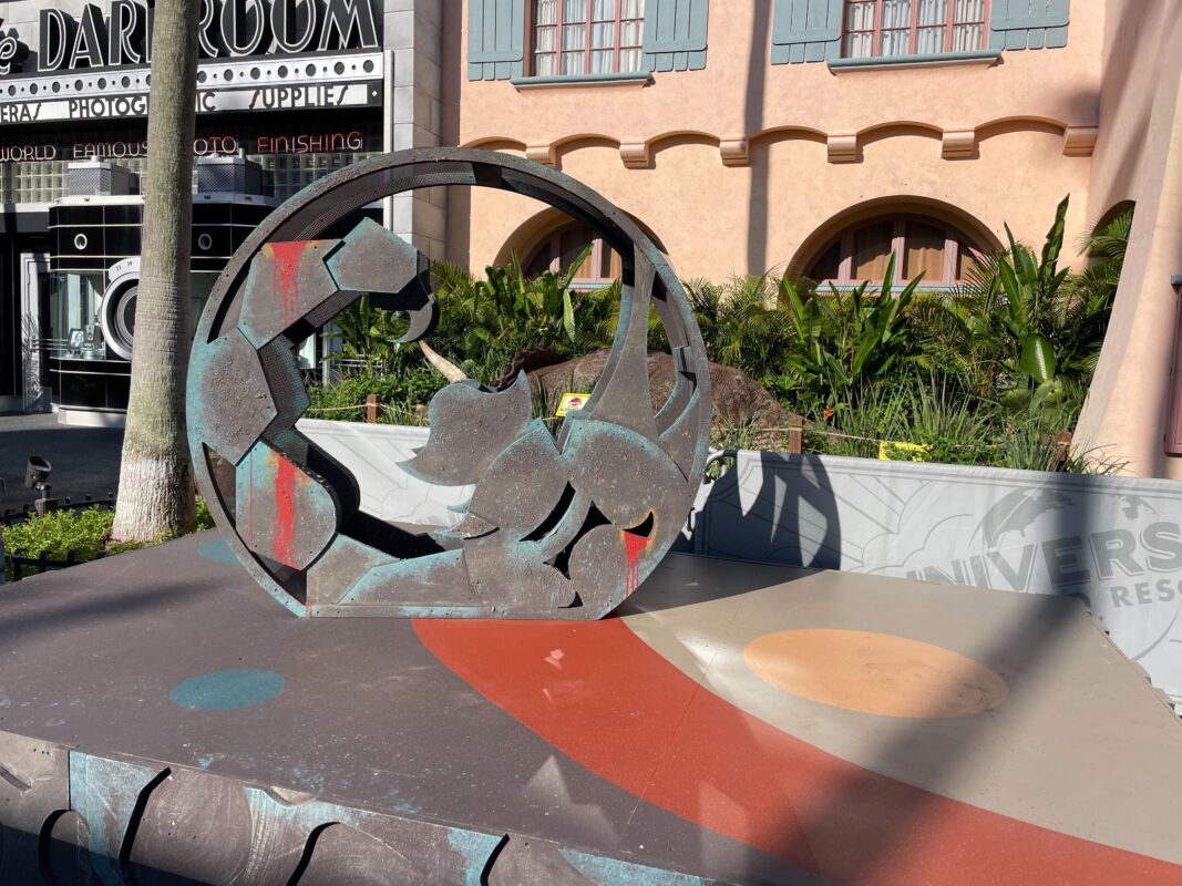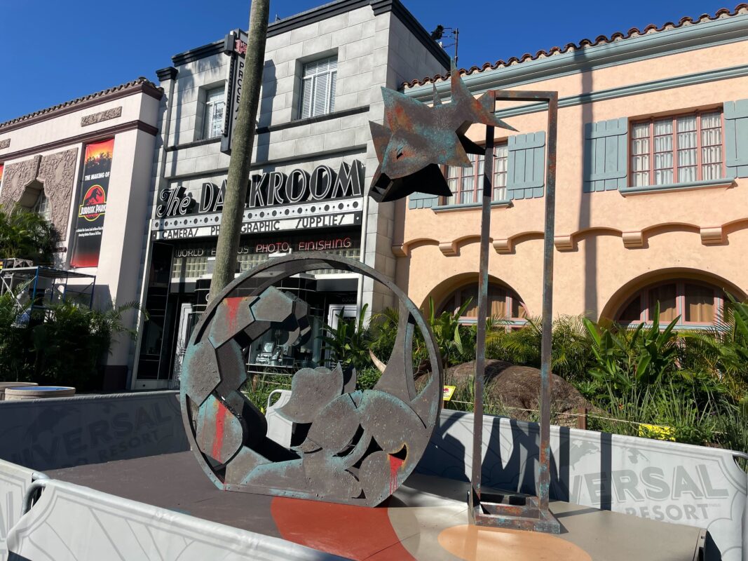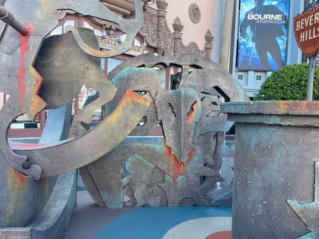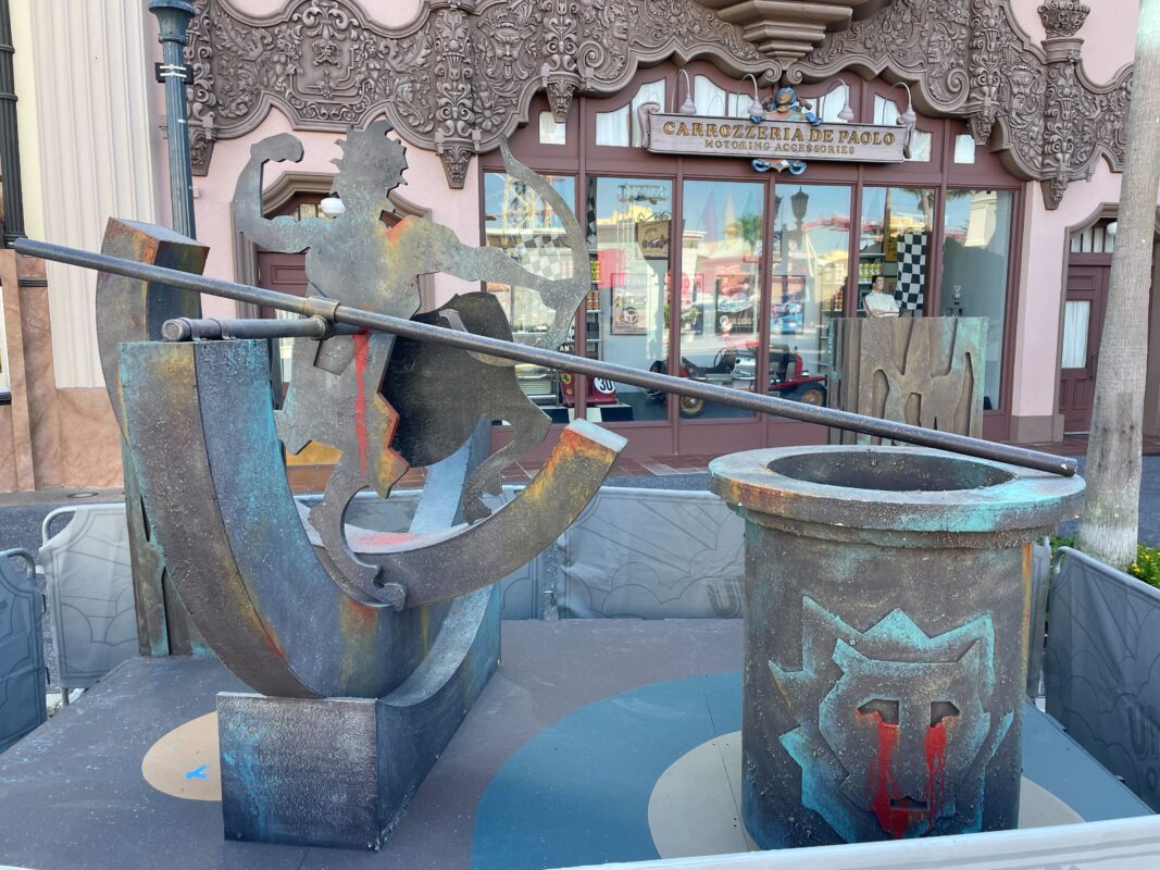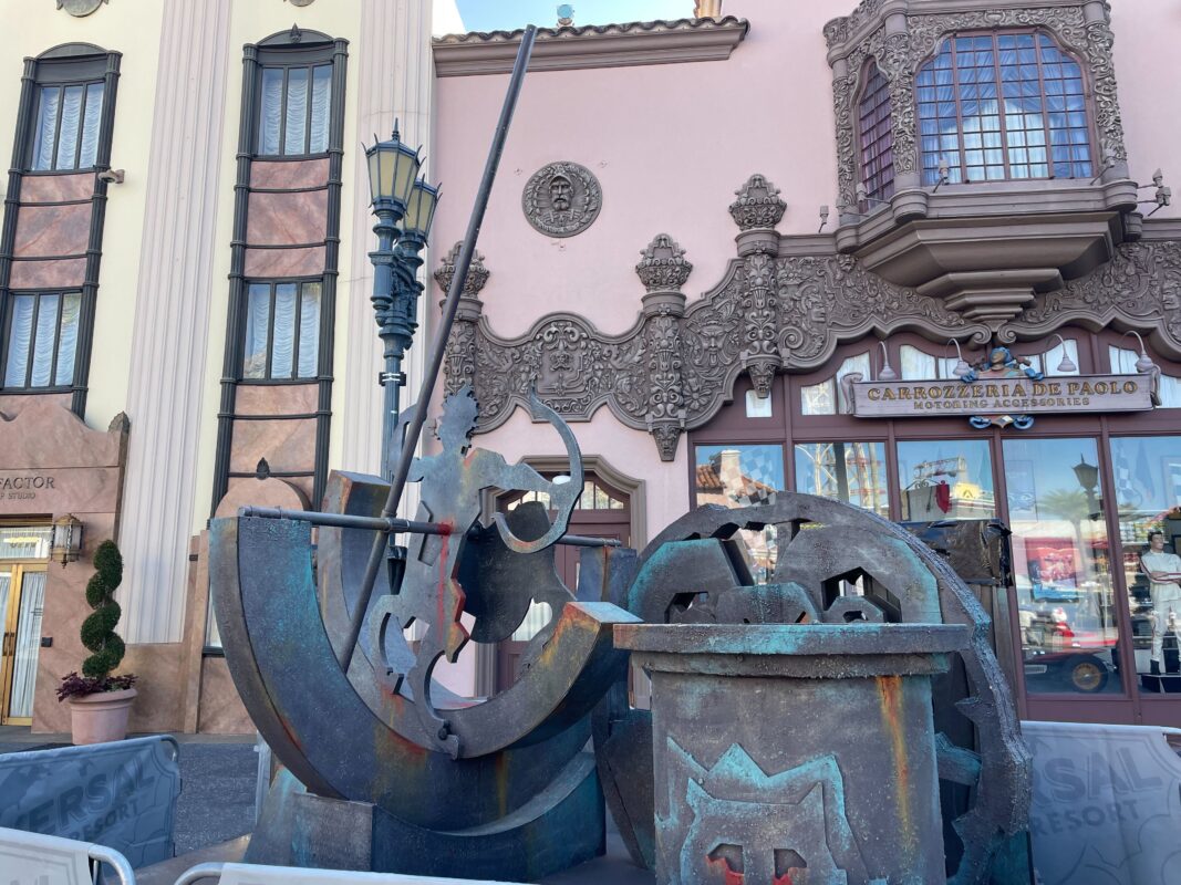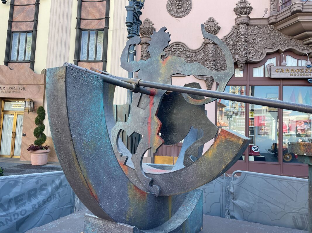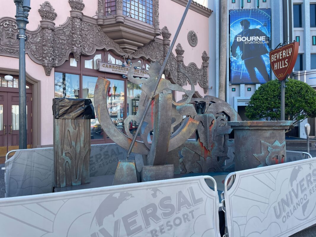 The Hollywood area of the park is becoming Dark Zodiac and crews are adding new zodiac-inspired metallic props to the platforms that were previously installed.