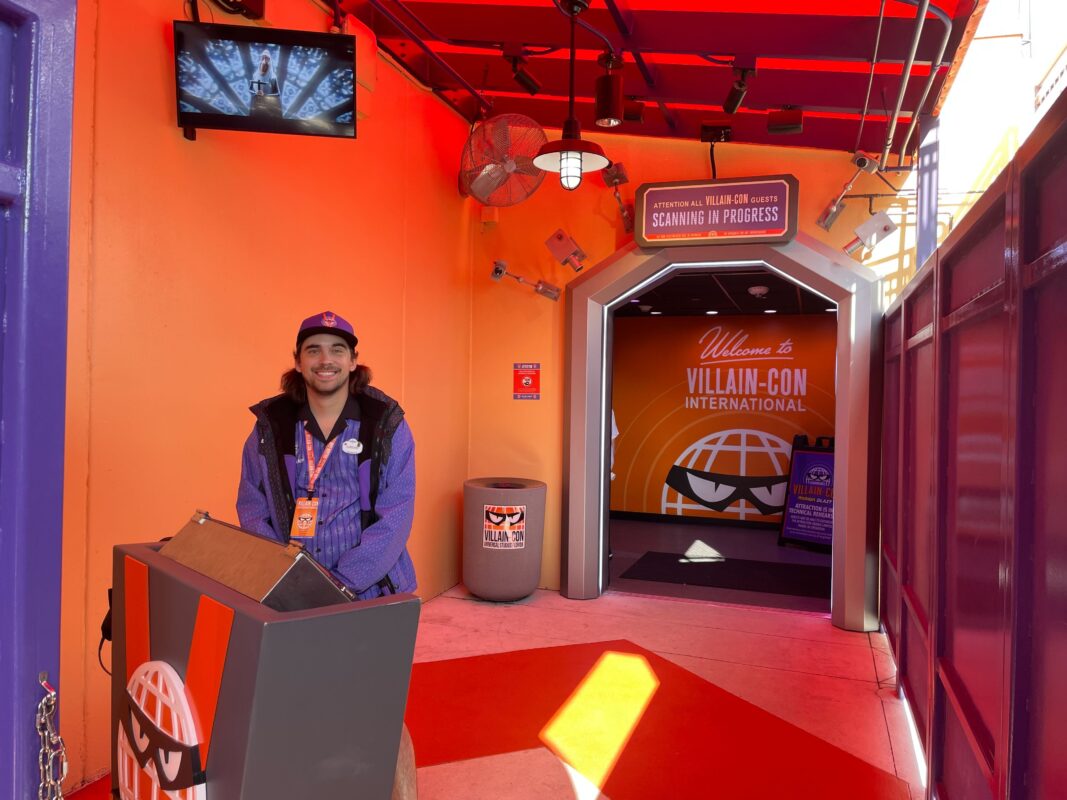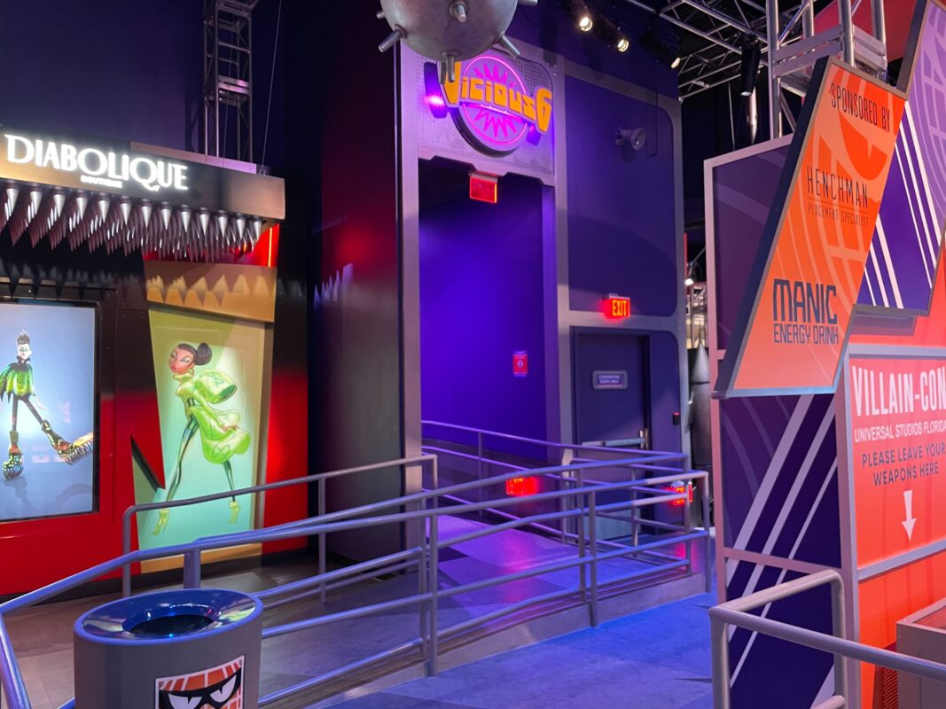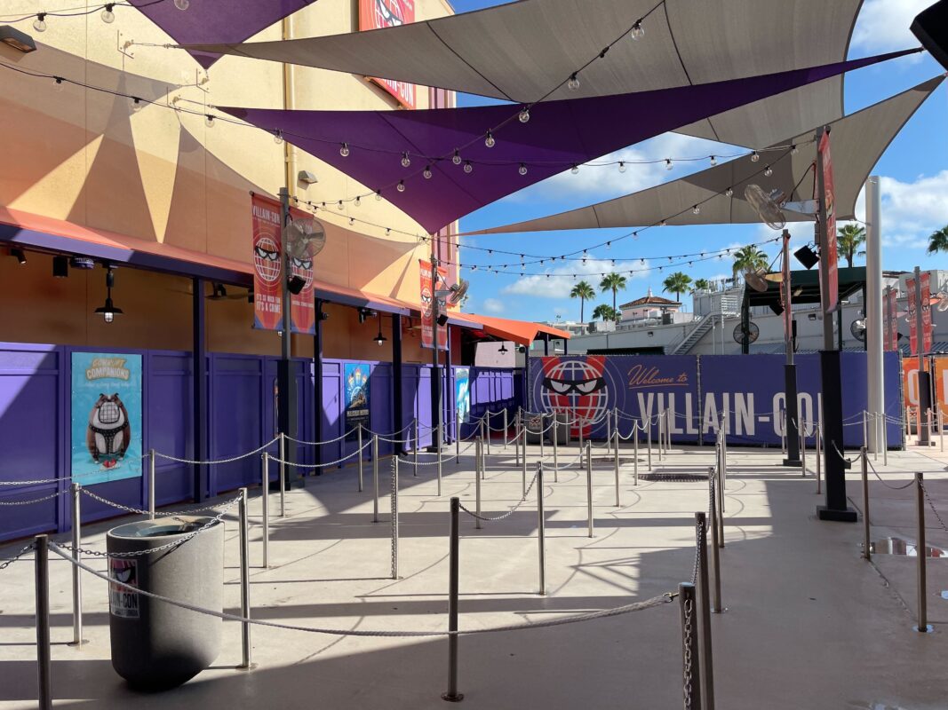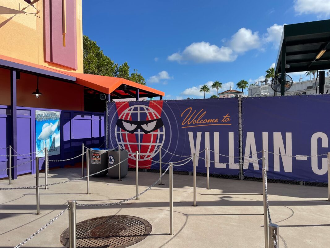 The exterior queue has been repainted and features Villain-Con banners, but otherwise isn’t super themed.