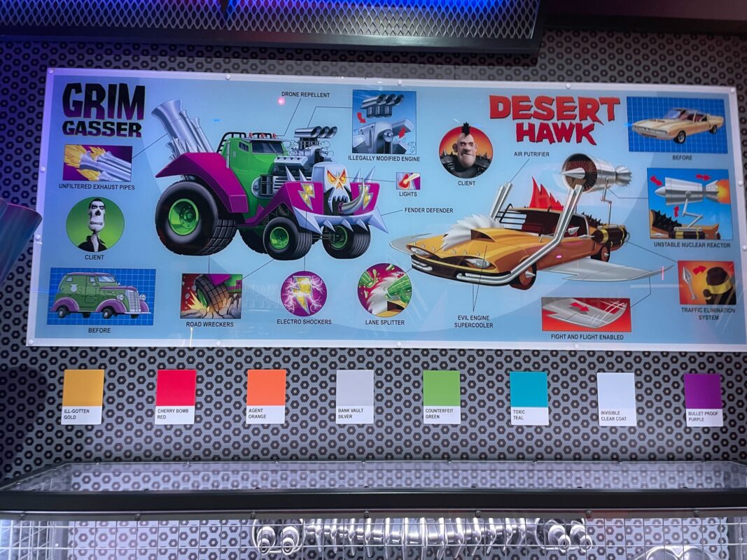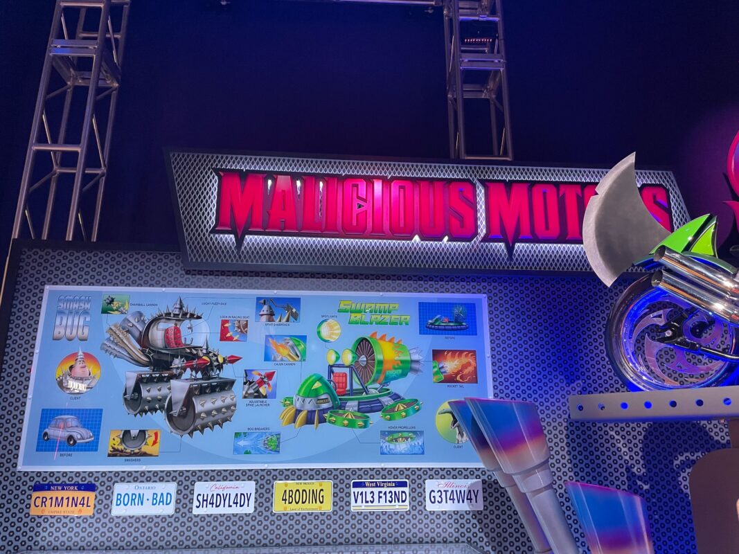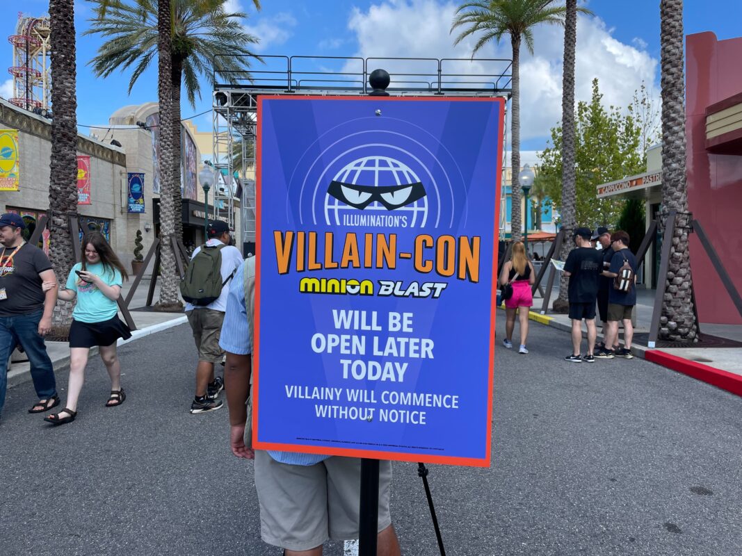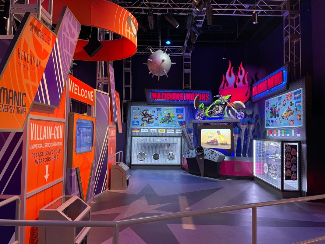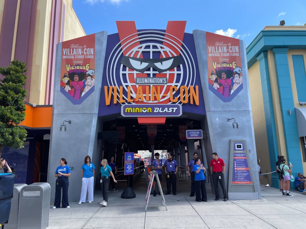 Illumination’s Villain-Con Minion Blast is themed to the fictional Villain-Con featuring the Vicious 6. The convention was featured in “Minions,” set in 1968, while the ride is set in the modern day, with Villain-Con visiting Universal Studios Florida.