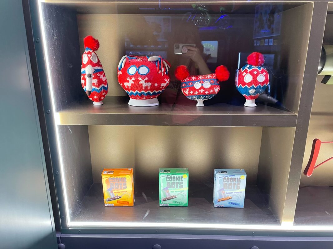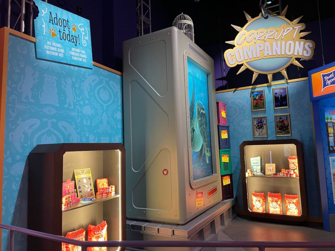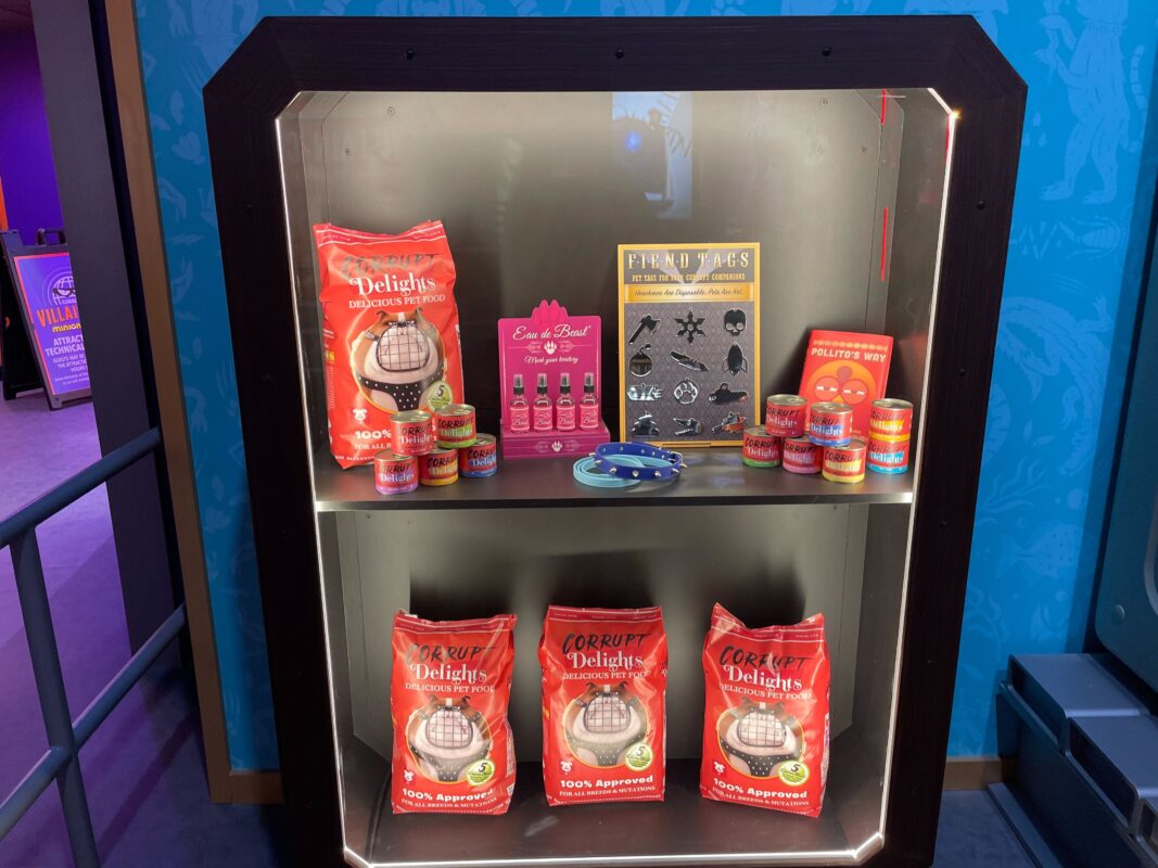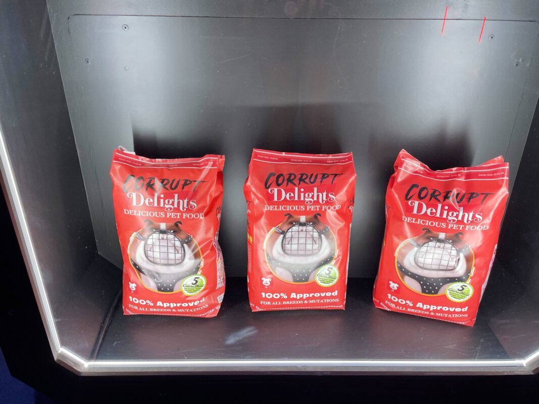 More products are in another display case, including bags of Corrupt Delights food.
