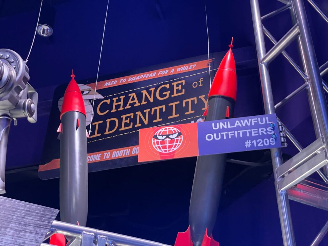 Missiles are atop this booth. There’s also a billboard for Change of Identity hanging above.