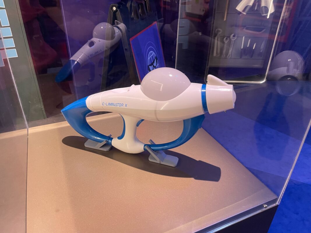 The E-Liminator X is in a display case.