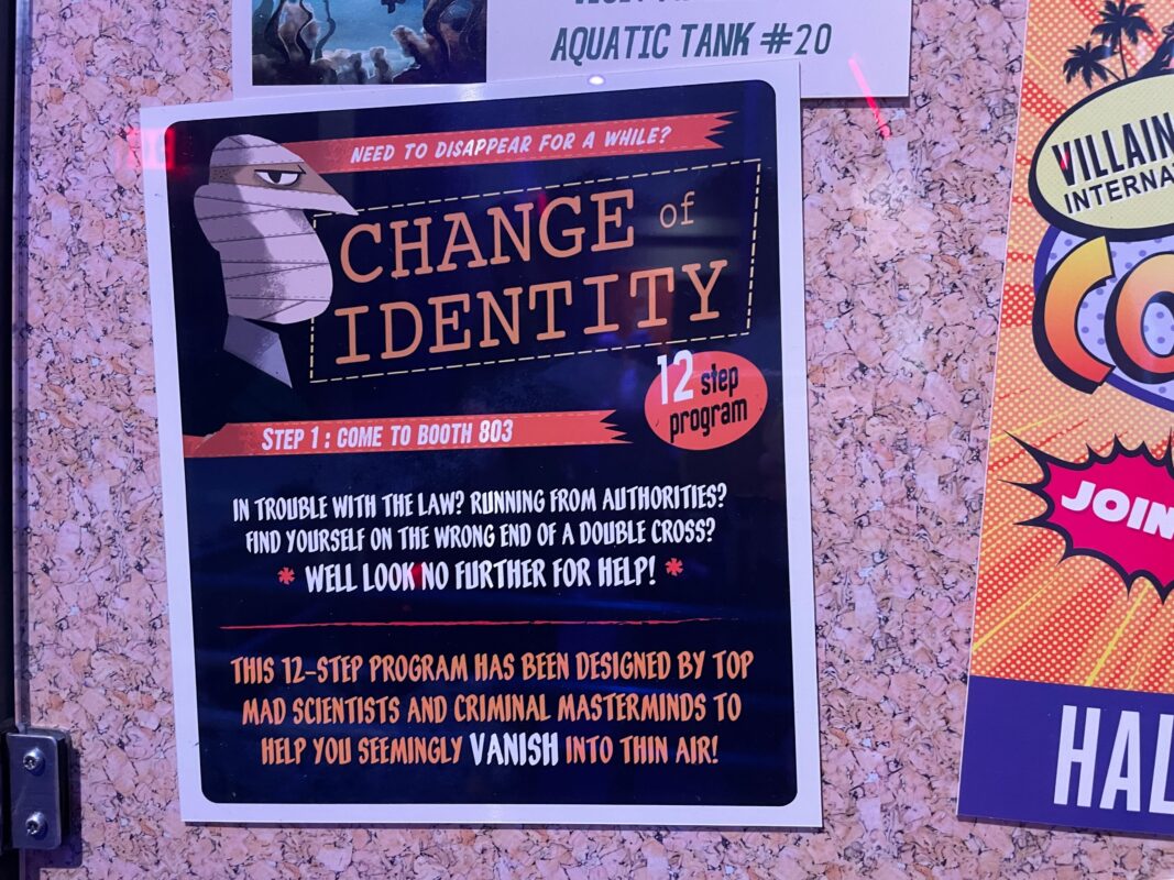 Need to change your identity? A 12-step program designed by mad scientists and criminal masterminds is available at booth 803.