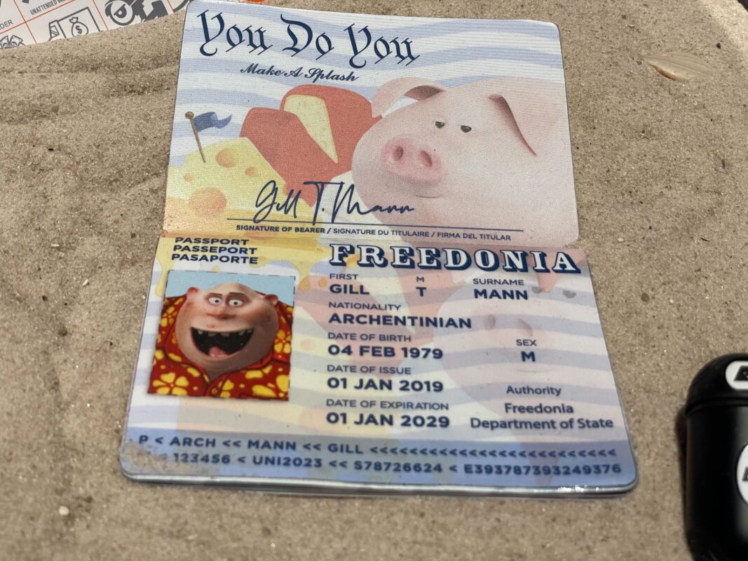 There’s a Freedonia passport for Gill T. Mann (a reference to Universal’s Gill-Man or the Creature from the Black Lagoon).