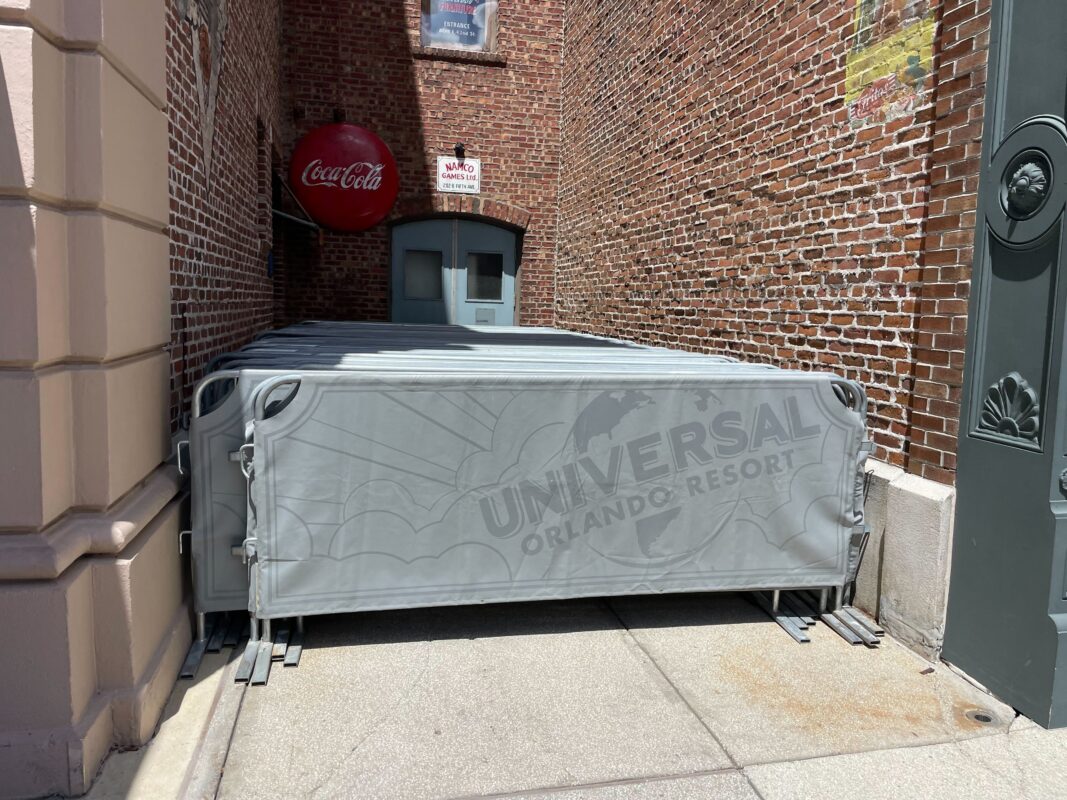 The alley looks a bit different now that the fire escape and ladder have been removed. At this time, the area is being used as storage for barricades that will be used during Halloween Horror Nights 32.