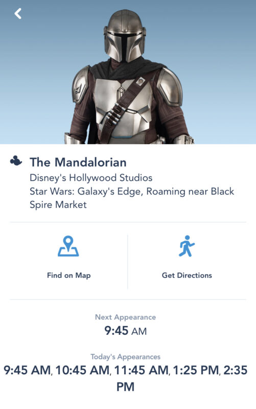 Times have been added to the My Disney Experience app for The Mandalorian and Grogu’s appearances in Star Wars: Galaxy’s Edge at Disney’s Hollywood Studios.