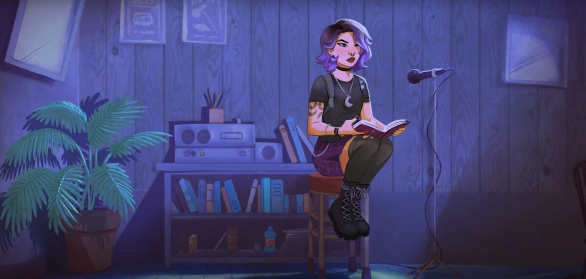 In the video, an unnamed woman leaves what appears to be a poetry reading looking frustrated at the small and disinterested crowd.