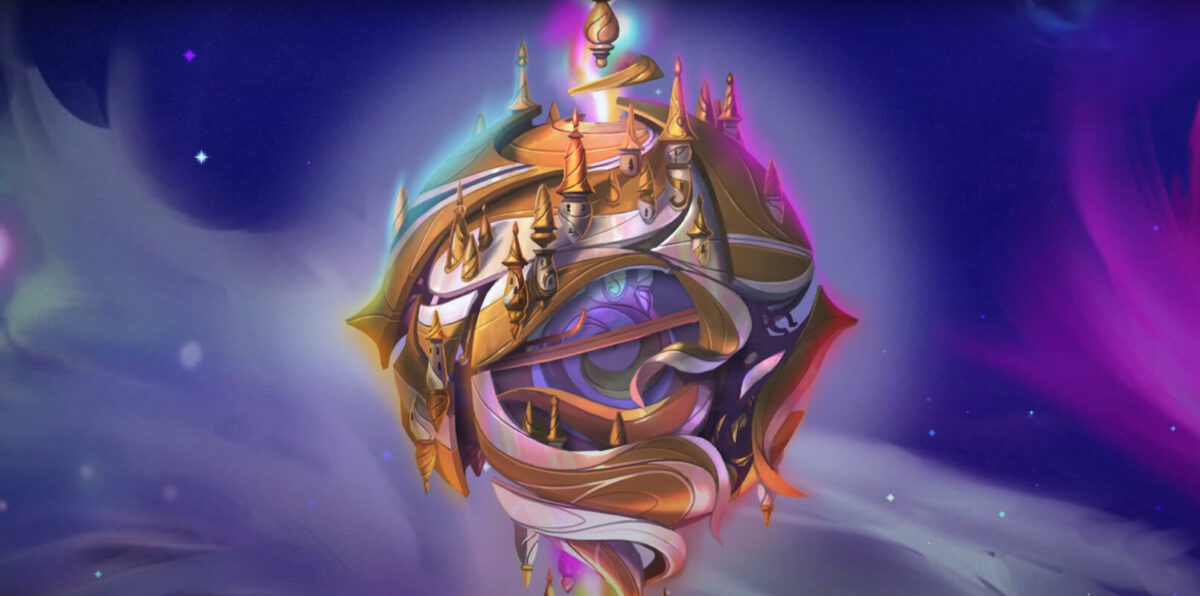 The camera then zooms out to show a planetary-like place, gilded in white and gold architecture with a multicolored glow. The video then ends, proclaiming that this is “The First Chapter” of the trading card game.
