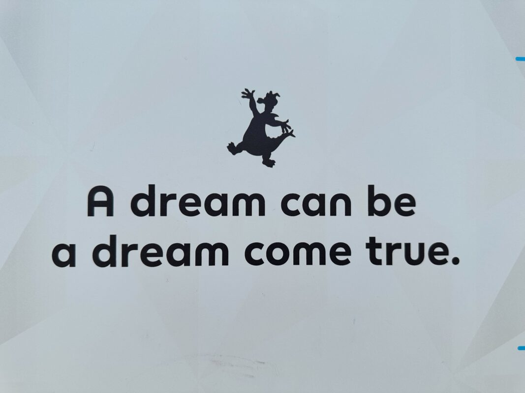 In the middle there is a silhouette of a Disney character, in this case, it is Figment. A uniquely themed phrase is also seen, “A dream can be a dream come true.”