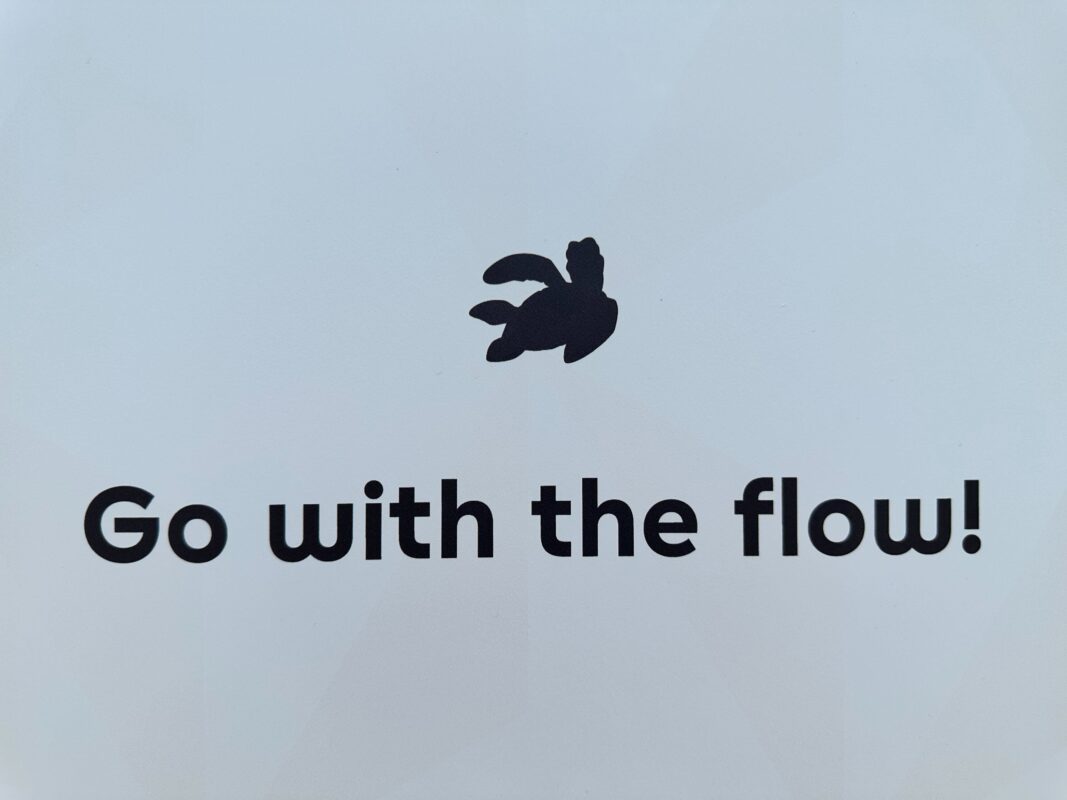 Dude! This sign has Crush the turtle from Finding Nemo with “Go with the flow!”