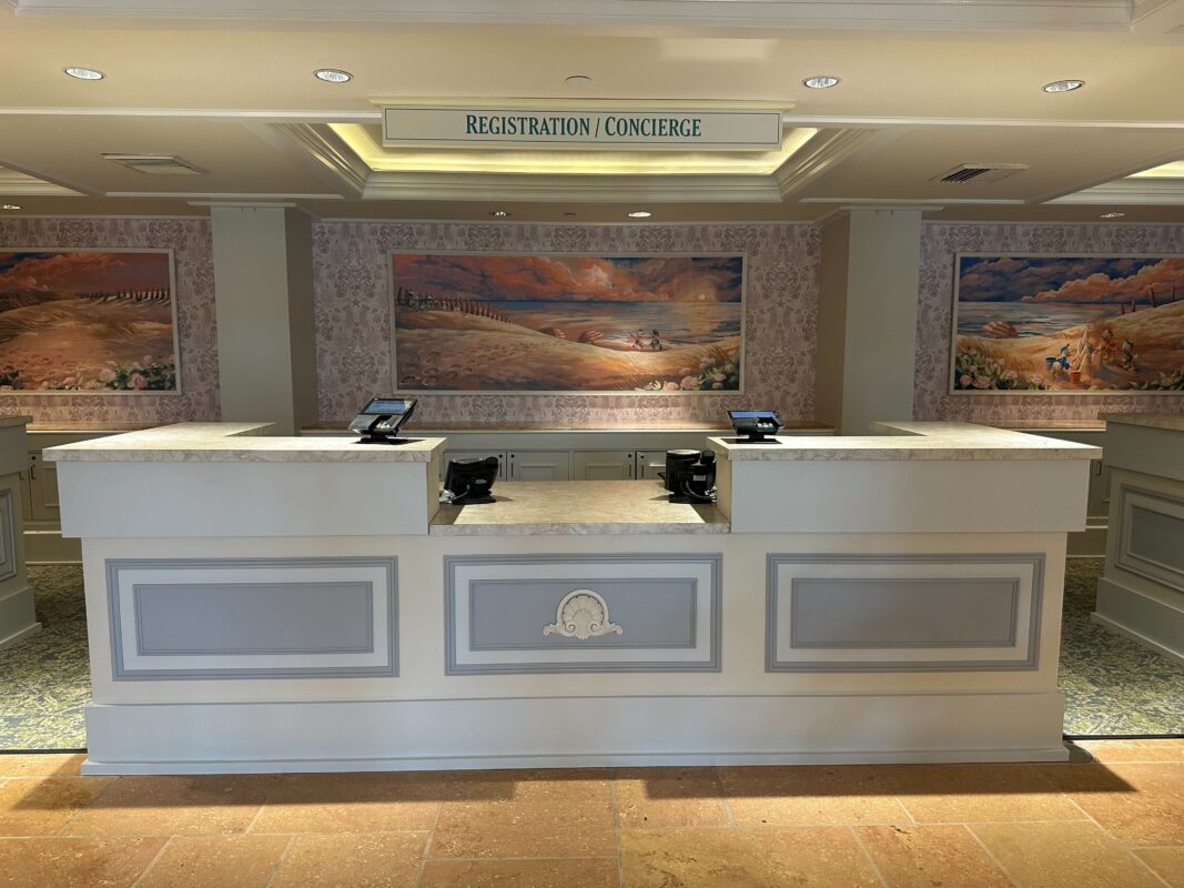 The single long check-in counter previously in this spot has been split into three counters. We’ve seen the same thing done at several Walt Disney World Resort hotels.