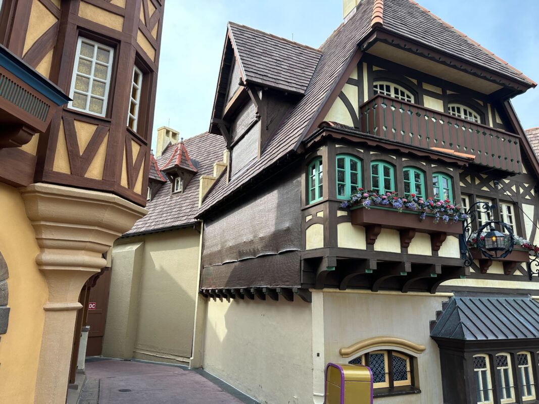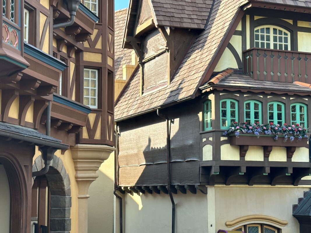 We noticed some scrim on the exterior of Columbia Harbour House in Liberty Square at Magic Kingdom, suggesting the facade is being refurbished.