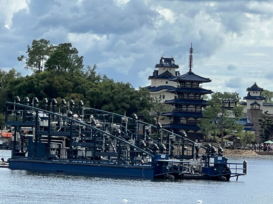 The first barge for “Luminous: The Symphony of Us” has arrived at World Showcase lagoon in EPCOT. The park’s new nighttime spectacular will debut on December 5, 2023.