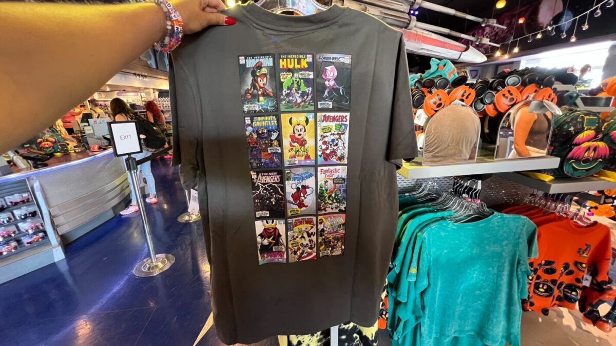 This black crossover shirt also features Mickey Mouse, this time with Iron Man. We found it at Star Traders.
