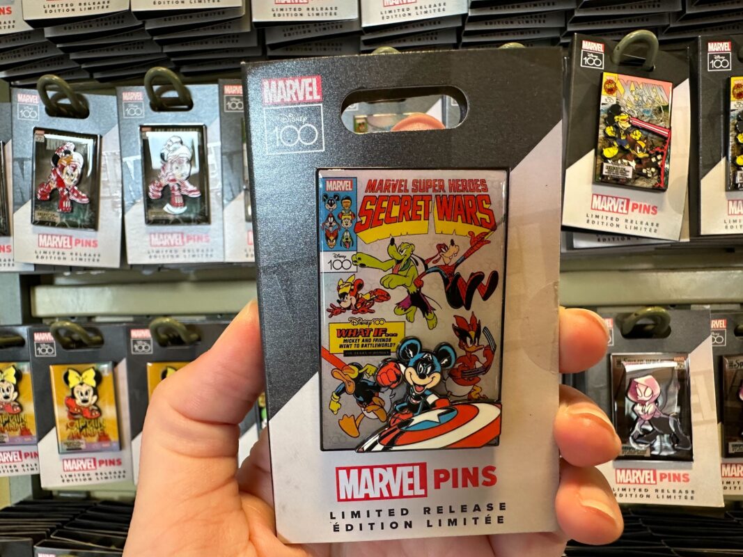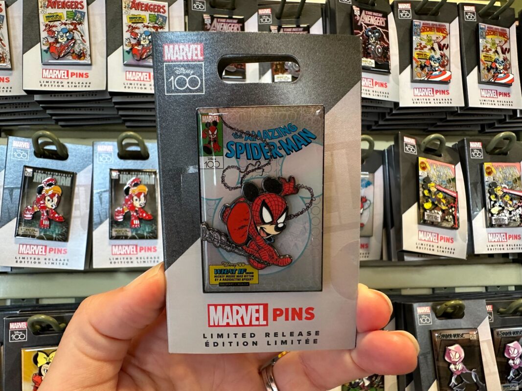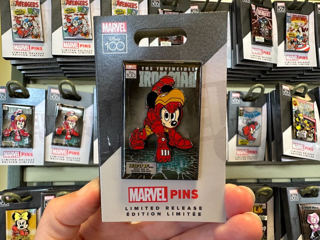 The Mickey as Iron Man we saw on a shirt is also available as a pin.