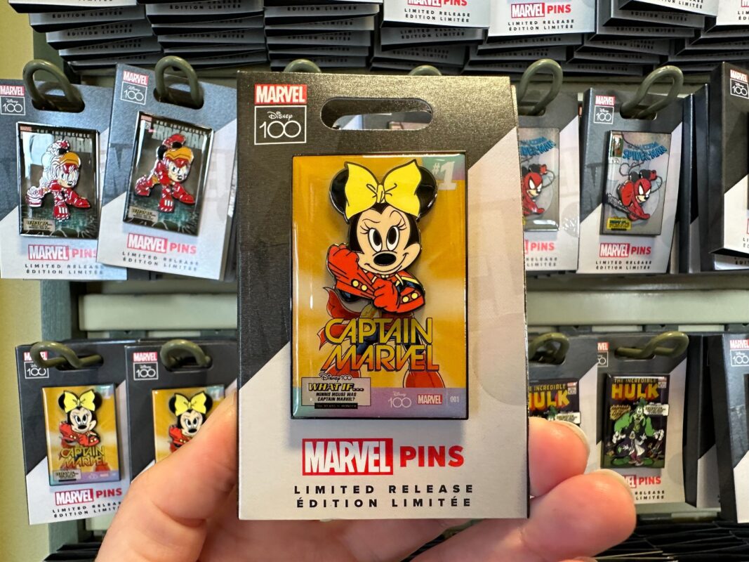 This pin has Minnie Mouse suiting up as Captain Marvel.