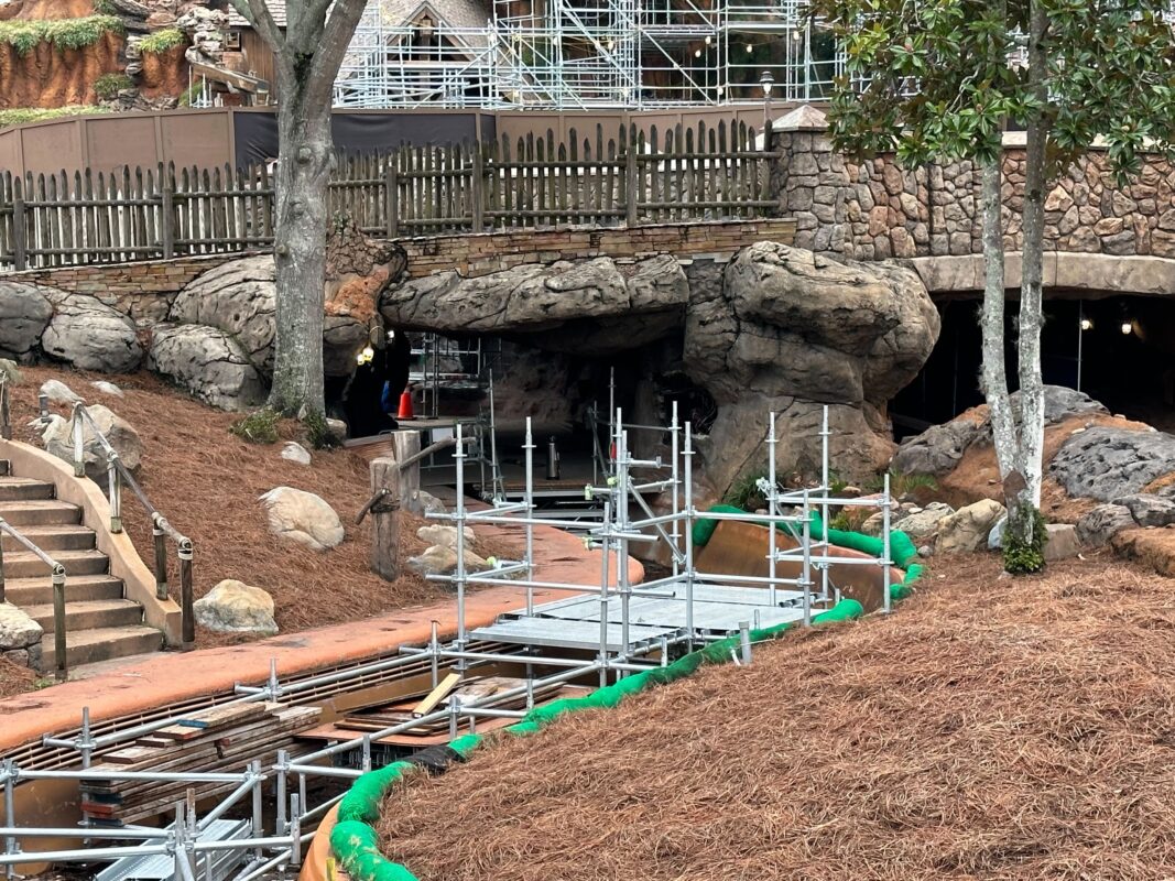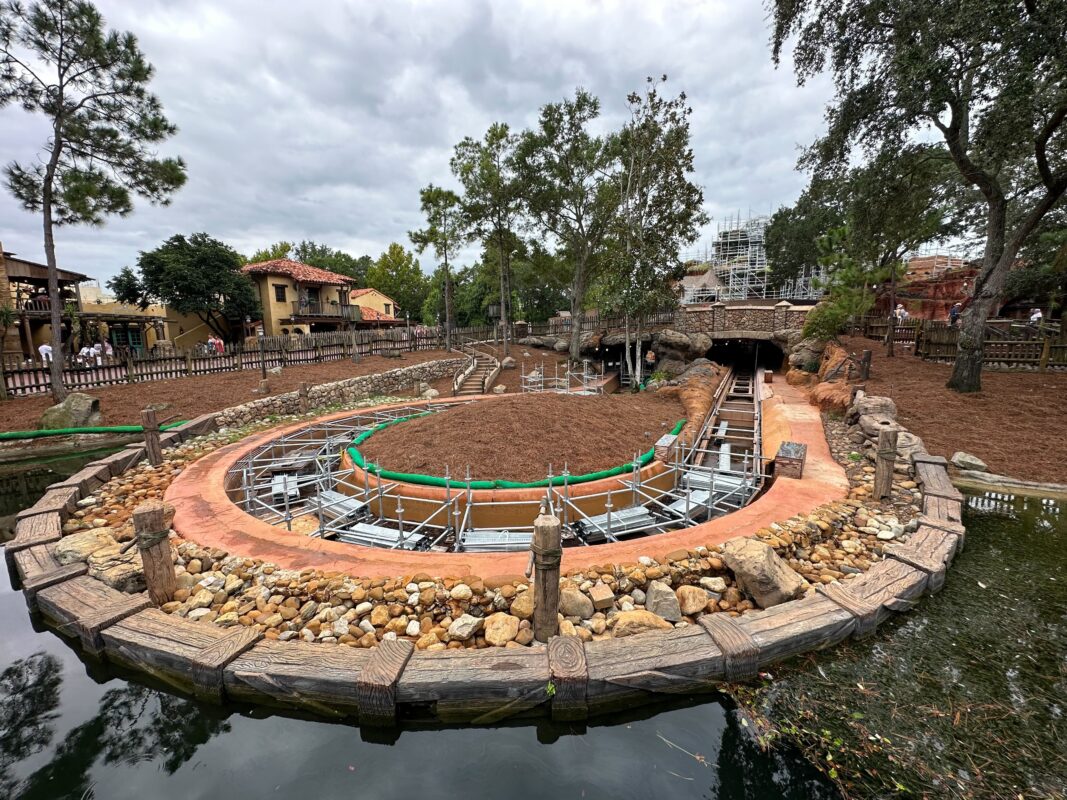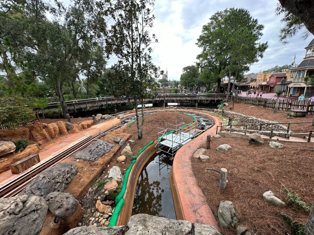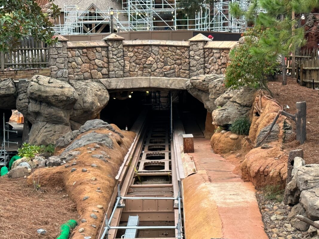 In addition to the mountain façade, we’ve been keeping a close eye on construction around the section of flume that goes loops under the Frontierland bridge.
