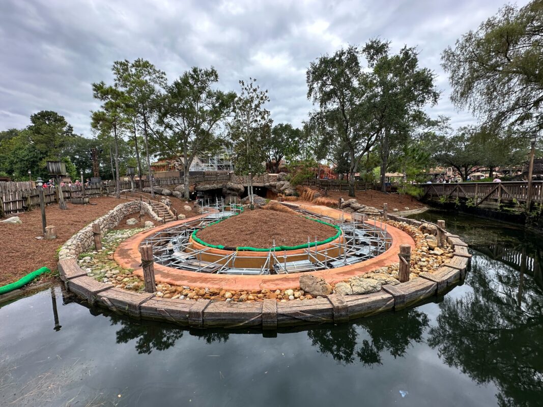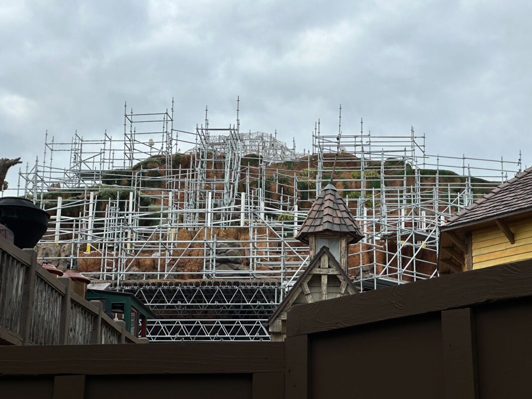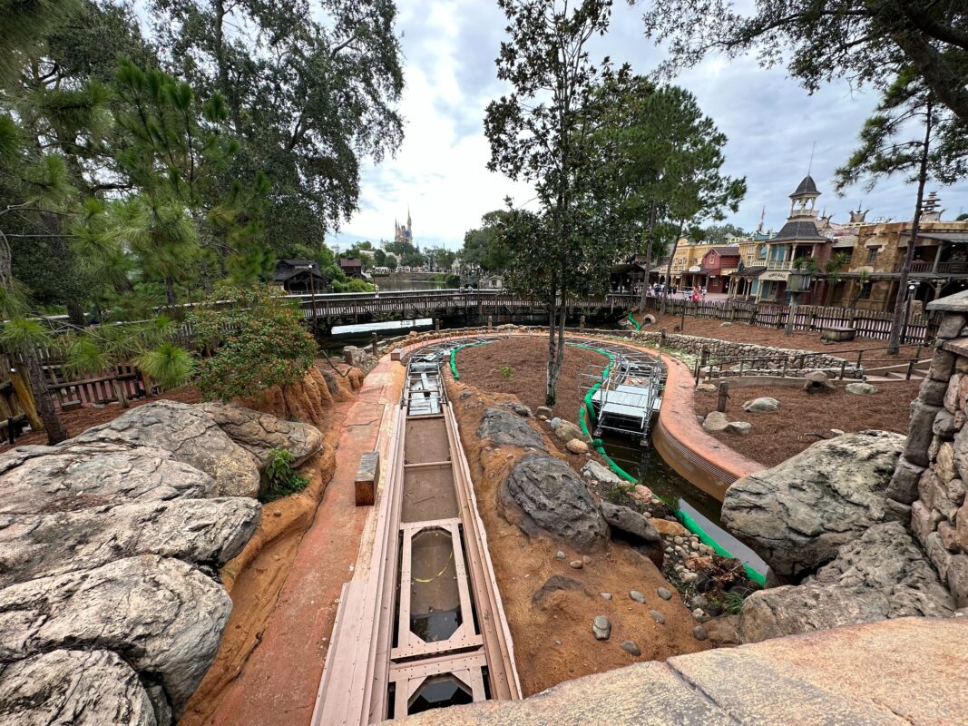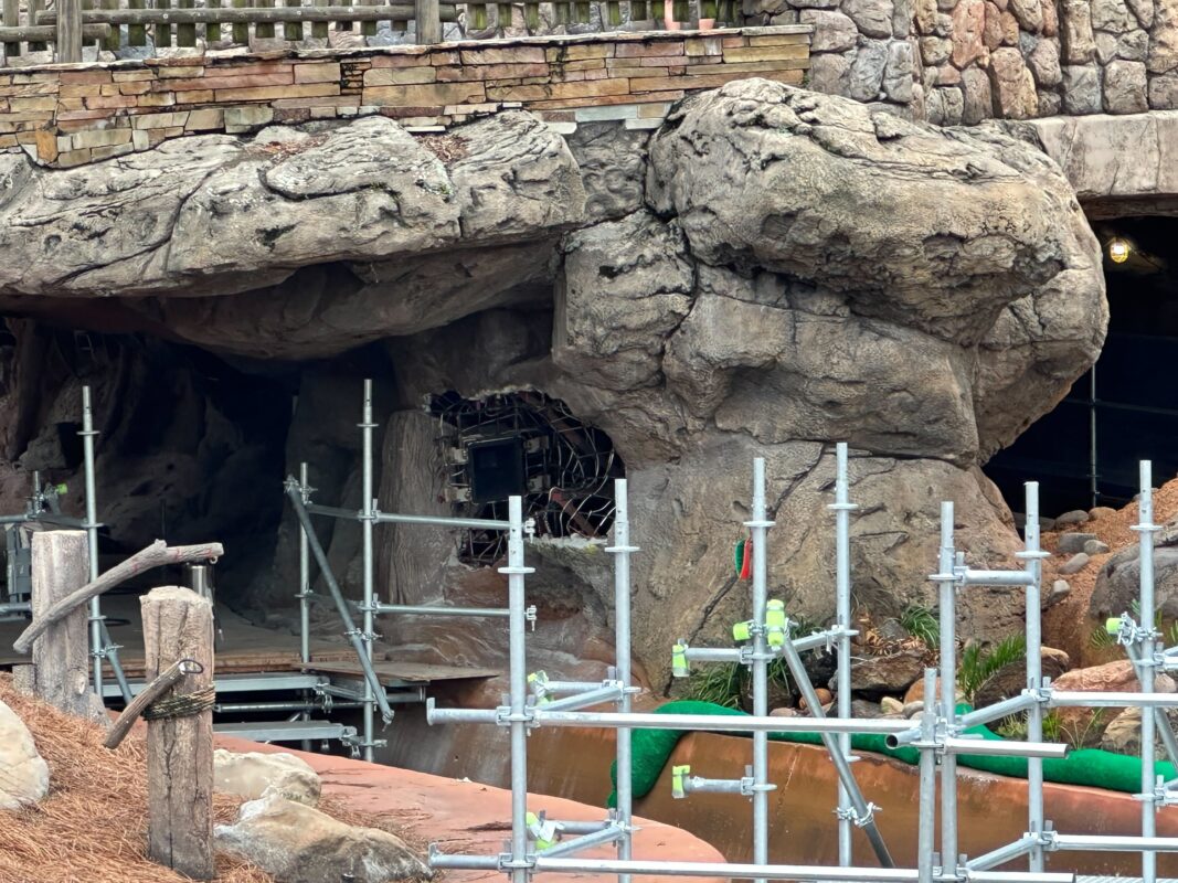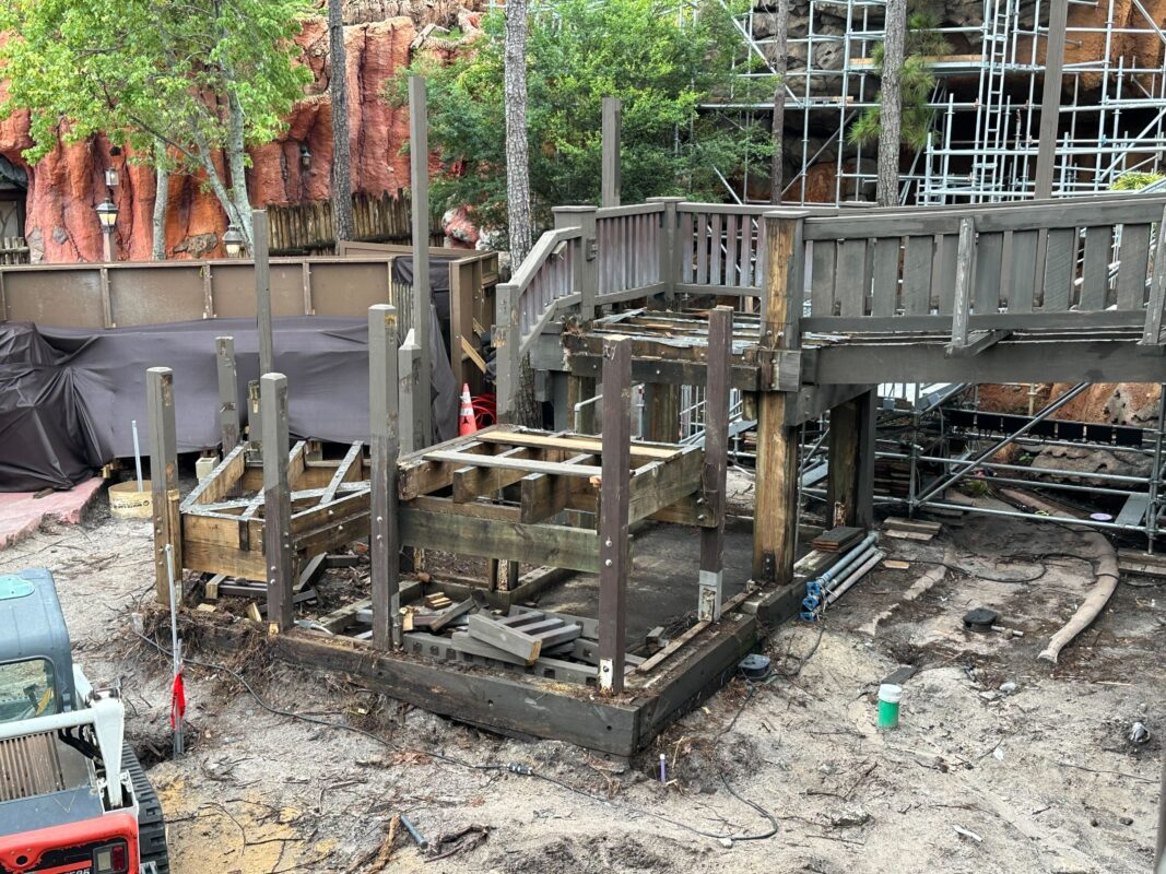 In addition to the mountain façade, we’ve been keeping a close eye on construction around the section of flume that goes loops under the Frontierland bridge.