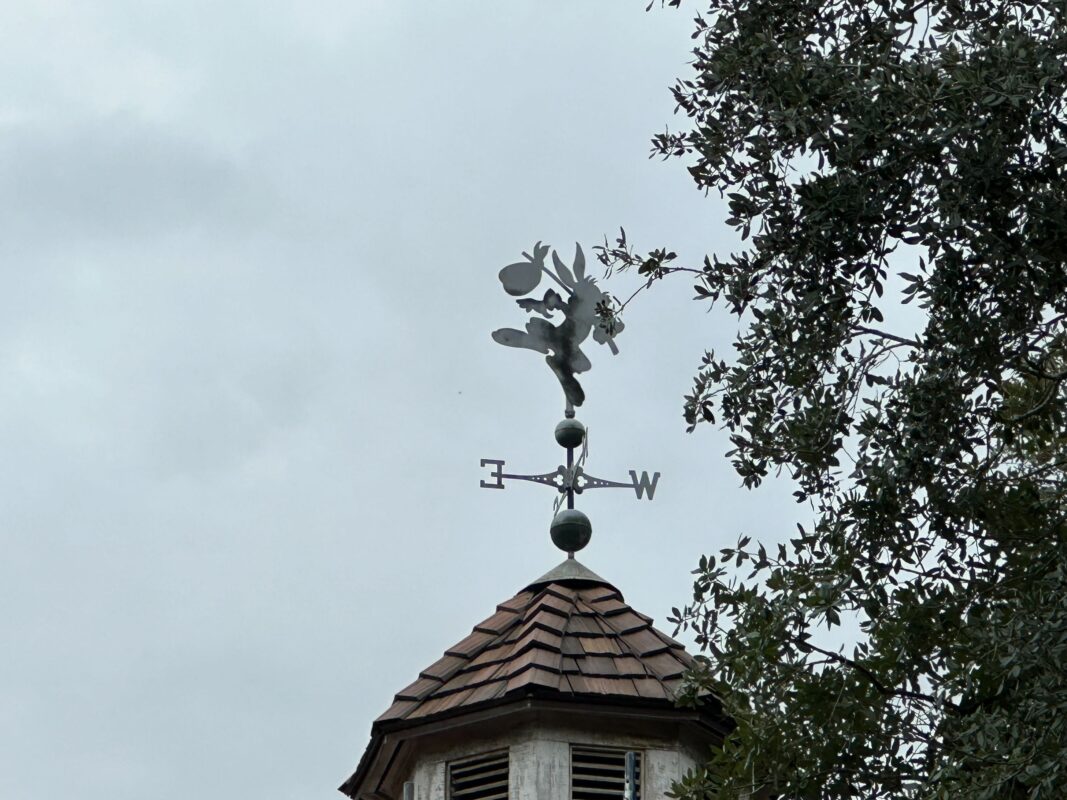 Atop the barn, the Br’er Rabbit weathervane holds strong.
