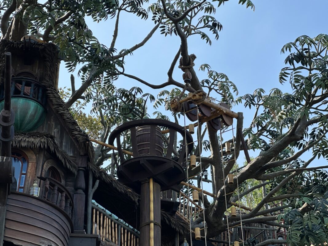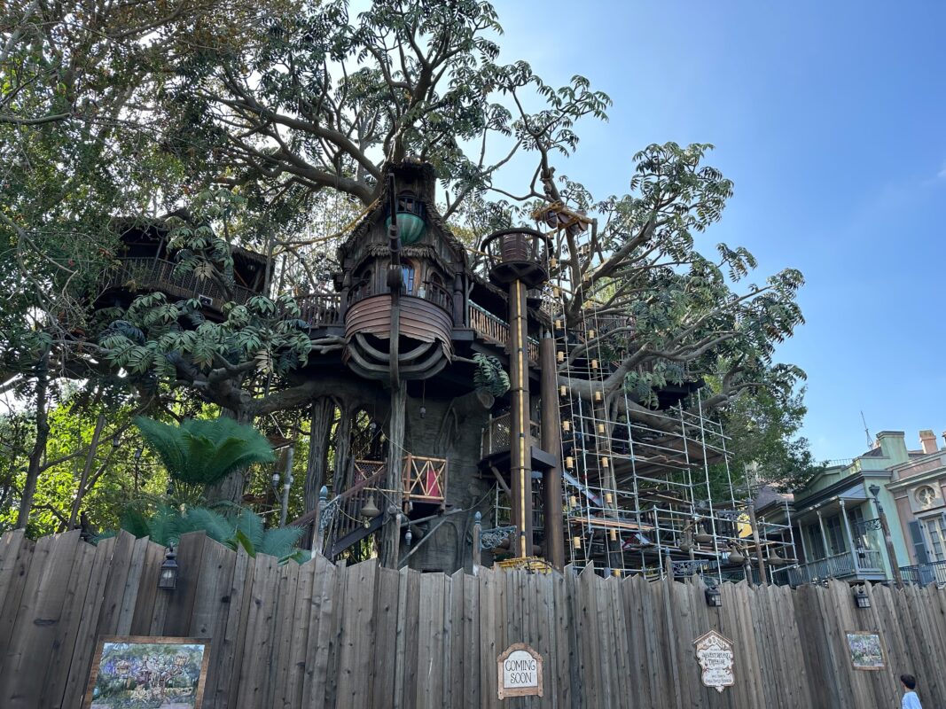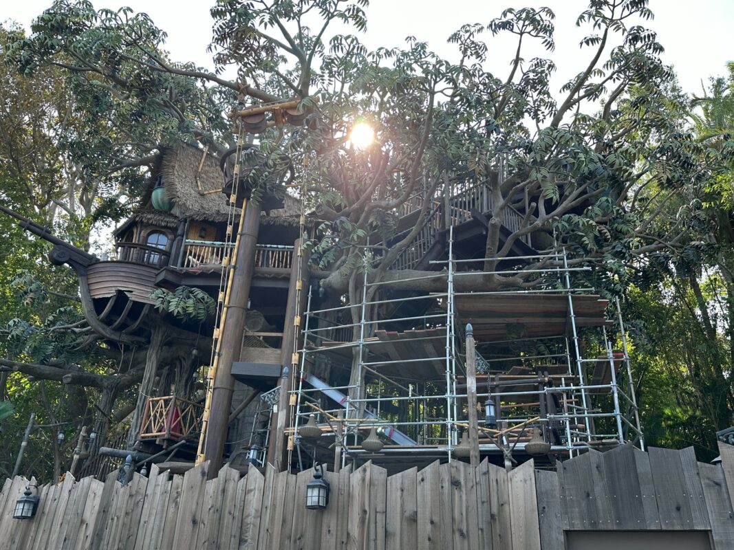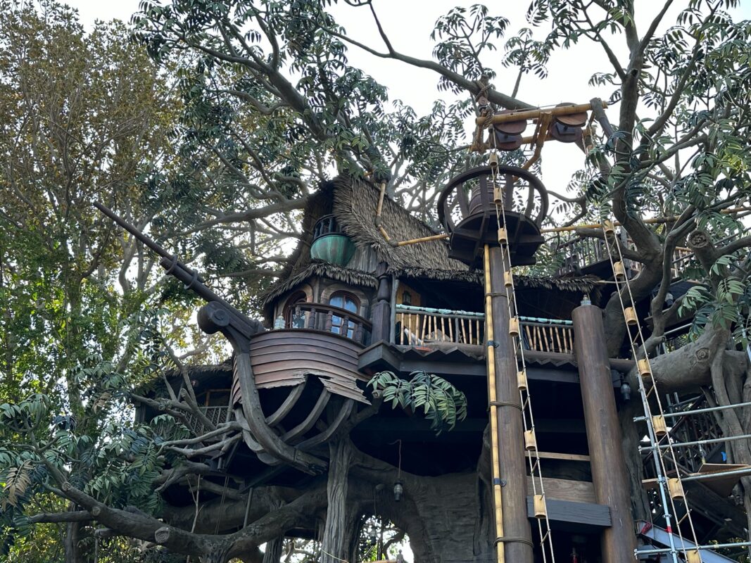 The Adventureland Treehouse at Disneyland is scheduled to open this fall, which means construction is nearing completion. The new version of the treehouse attraction is inspired by “Swiss Family Robinson” but features a different, original family.