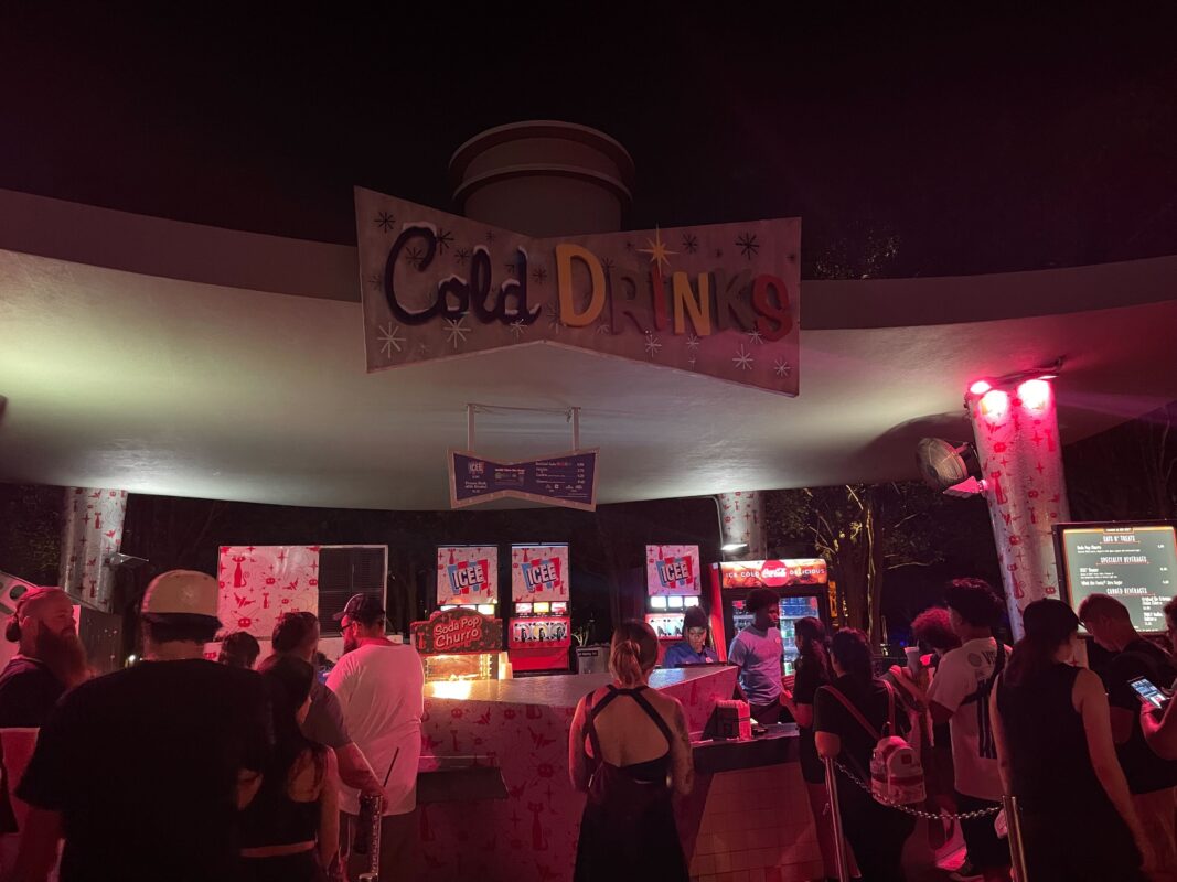 Looking for a quick snack or a cold drink during Halloween Horror Nights? Refresh and refuel with a quick stop to the ICEE stand near Men In Black: Alien Attack. This location towards the back of the park is serving a special Soda Pop Churro and alcoholic ICEEs for Halloween Horror Nights 32.