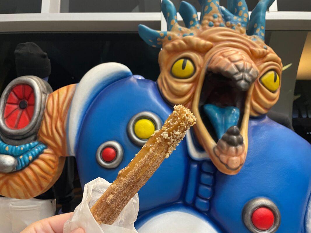 The churro was fresh and the idea of a soda pop churro is unique enough to give this one a try on your visit to Halloween Horror Nights. This wasn’t memorable enough to go out of our way to get again, but it was still tasty. If you’re not looking for something quite as adventurous as the Soda Pop Churro, we would recommend the vegan churros from the Dia de los Muertos booth.