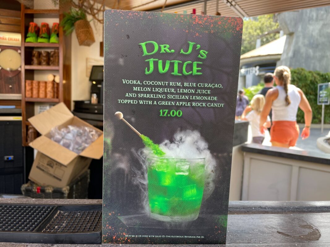 In honor of Universal Monsters: Unmasked, a specialty cocktail has been added to Isla Nu-Bar on the Lower Lot of Universal Studios Hollywood. Dr. J’s juice is inspired by Dr. Jekyll and may have you transforming into Mr. Hyde. Let’s hit up Isla Nu-Bar and give Dr. J’s Juice a try.