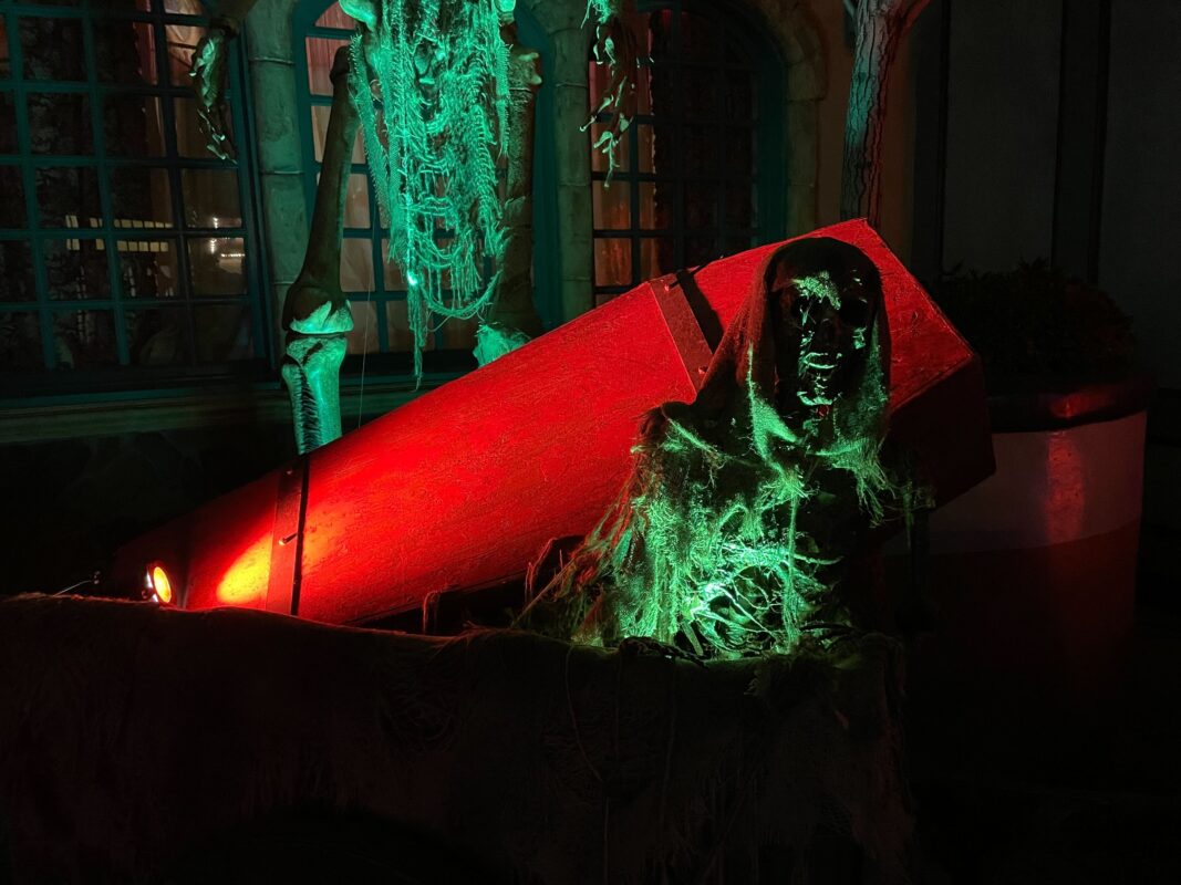 The long path allows the Scareactors to roam more. There are animatronic skeletons at each end of the zone. We were scared by Scareactors a few times because we were distracted listening to a talking skeleton.