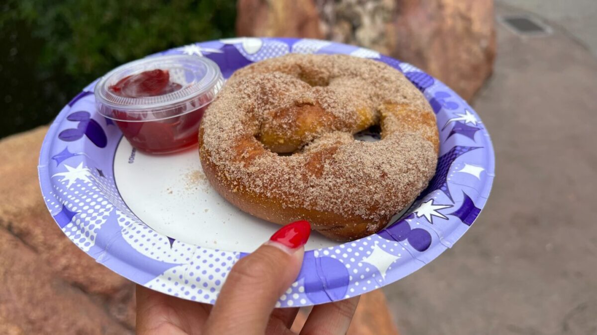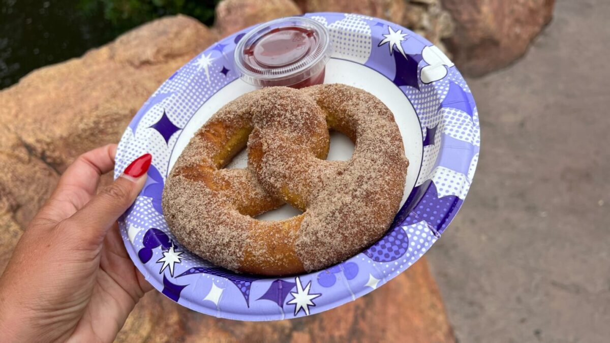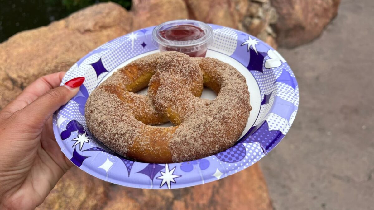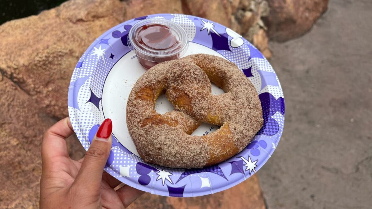 If you’ve found yourself hankering for a sweet treat after taking a ride on Big Thunder Mountain Railroad, you won’t have to venture far: the pretzel cart near the ride has this guava and cheese pretzel, served in honor of Hispanic and Latin American Heritage Month.