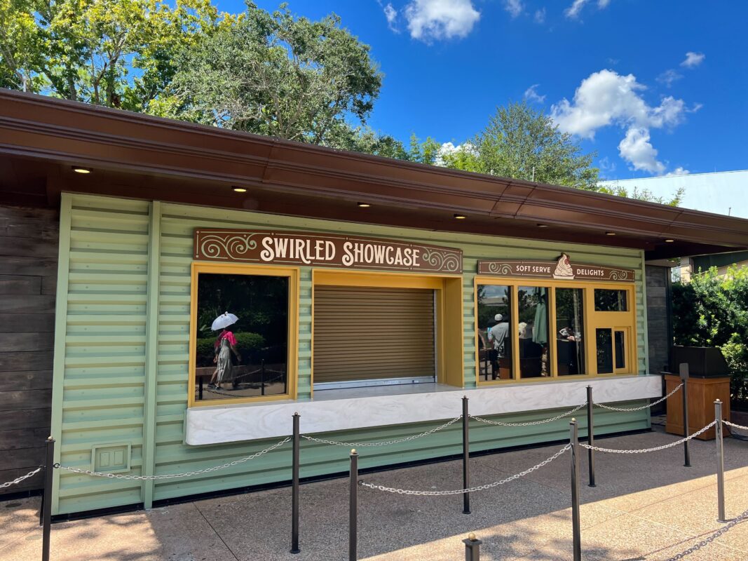 Swirled Showcase is located between the Canada Pavilion and Port of Entry. You can find it at number 33 on the map above.