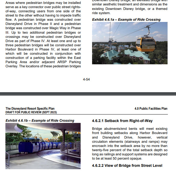 Up to two additional pedestrian bridges are being proposed for Disneyland Drive to help transport guests to the proposed new entertainment, shopping and dining area, according to the DSRP, which “will serve as a continuation of the themed environment across the roadway.”