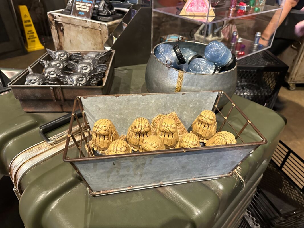 At Dok-Ondar’s Den of Antiquities, guests can purchase lightsaber hilts and other artifacts. Guests can build their own custom lightsabers in Savi’s Workshop. They can purchase droid-related merchandise and build a custom droid in Mubo’s Droid Depot.
