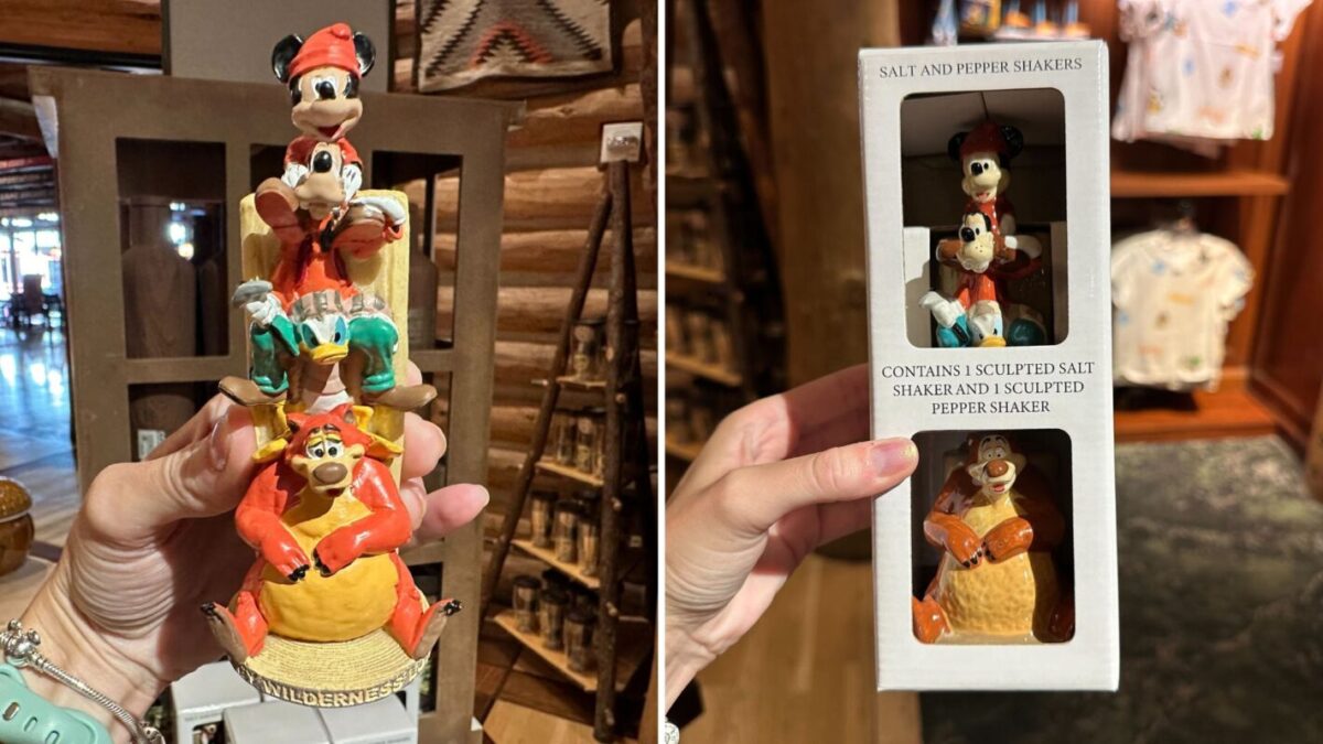 Disney’s Wilderness Lodge has two more items inspired by the resort’s totem pole featuring Mickey, Goofy, Donald, and Humphrey the Bear. New this week is a sculpted magnet and a set of salt and pepper shakers.