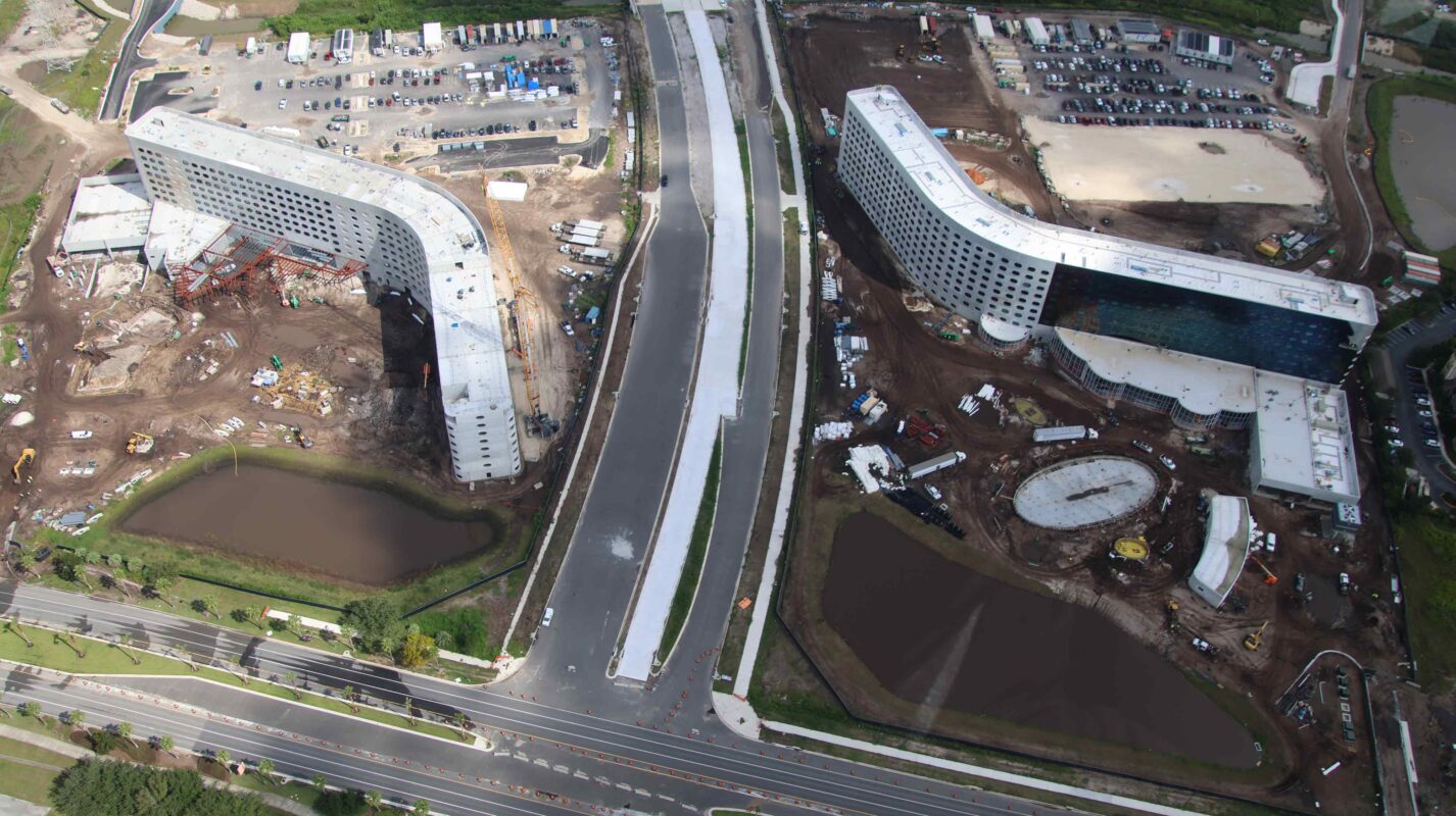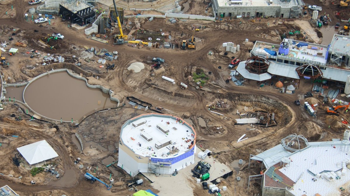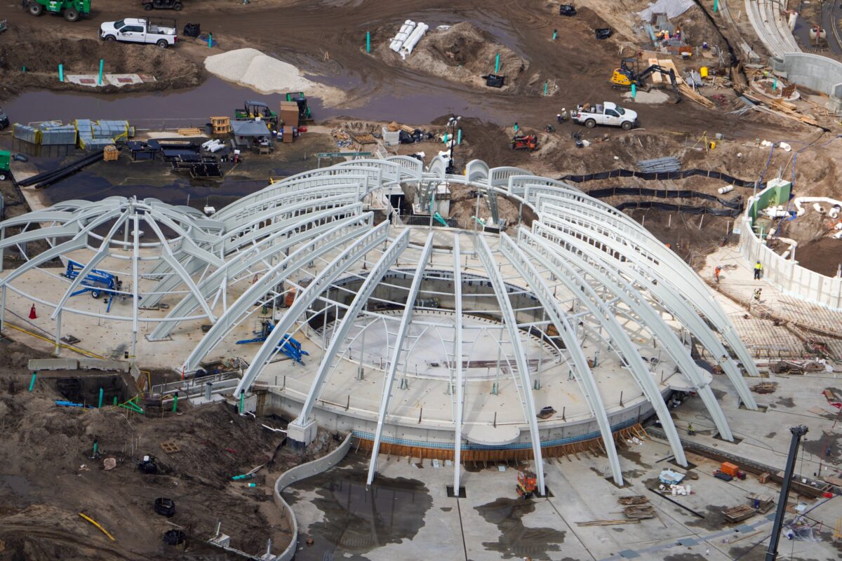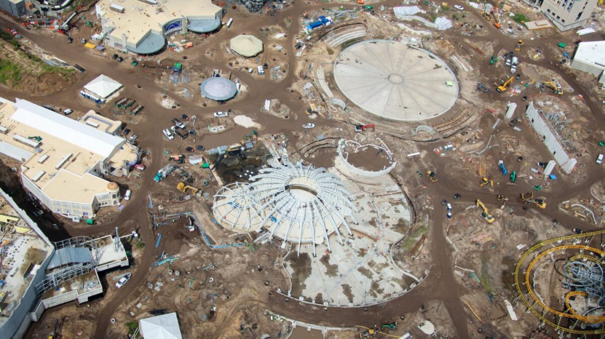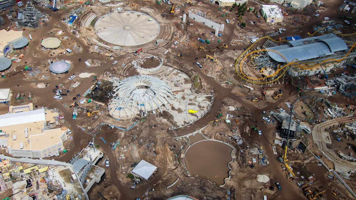The domed roof to the left in this photo will be the location of admission sales. The park will use “facial recognition, photo validation technology” that will allow guests to have a “frictionless experience”.