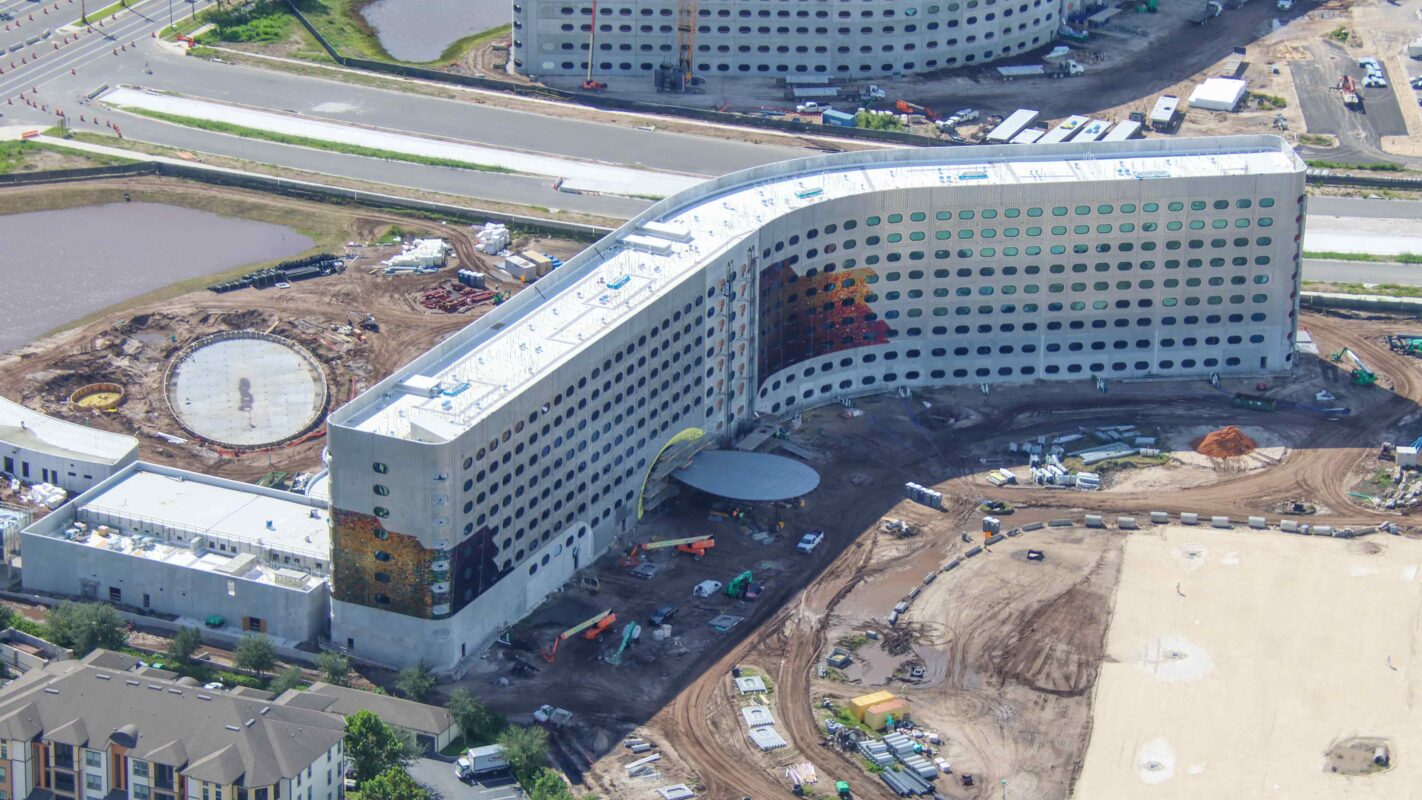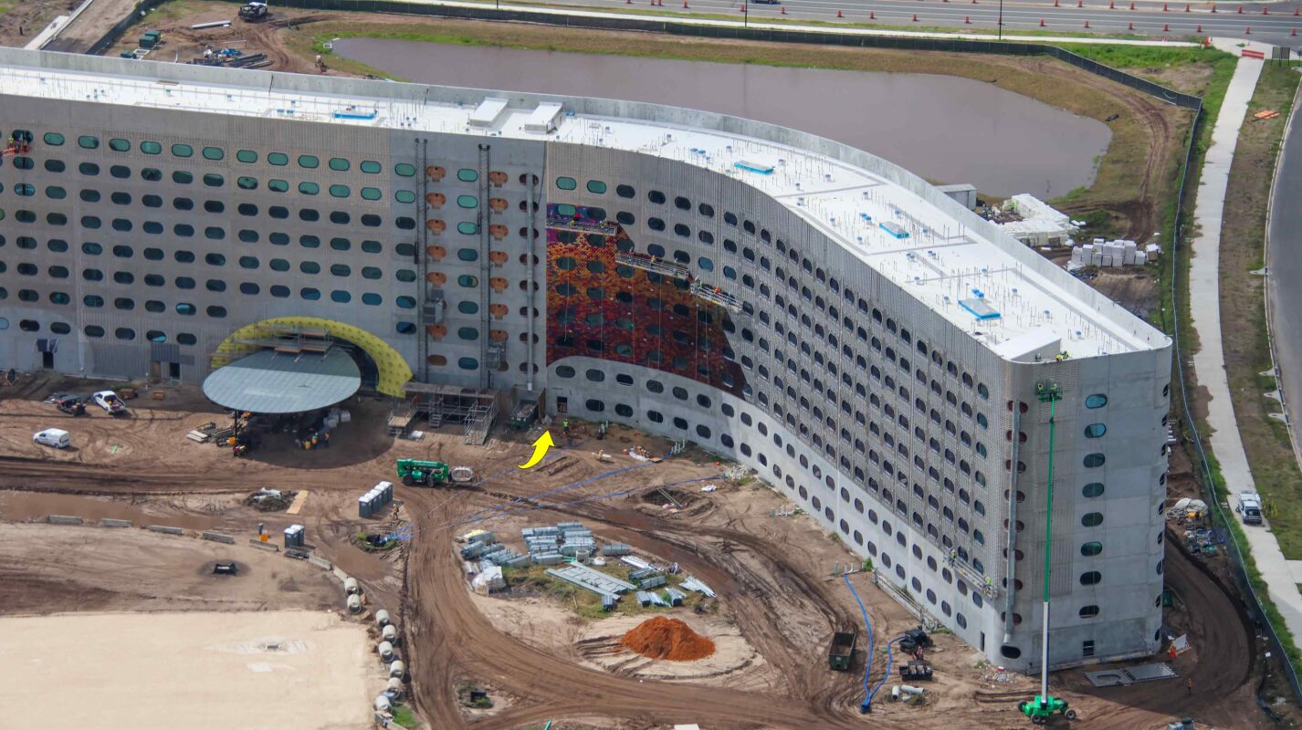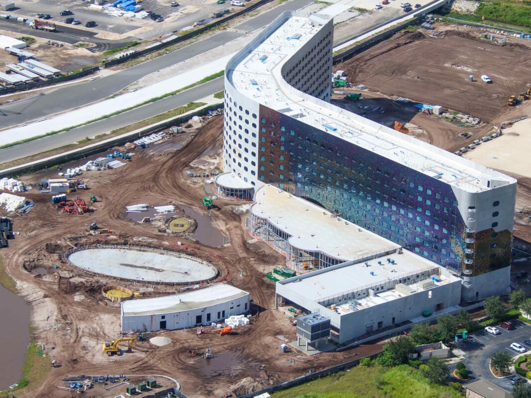 Two other Universal Orlando Resort hotels are under construction just a short bus ride’s away from Epic Universe. Colorful tiles are now being installed on the exteriors of these hotels.