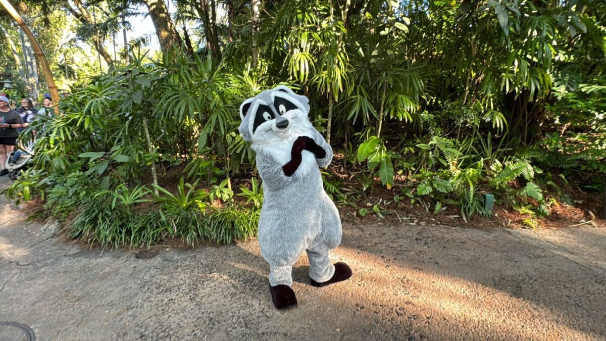 Cast Members said Meeko and Pocahontas’ meet and greets are currently happening from approximately 9:00 a.m. to 11:00 a.m. At 11:00, they’ll go back to appearing on the Discovery River Character Cruise.