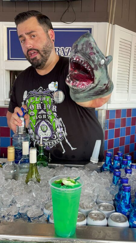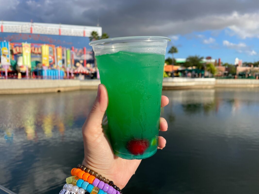 The addition of blue curacao adds a pop of color and turns the green water darker as it mixes in. The drinks aren’t premixed here, making it an ideal stop during Halloween Horror Nights. If you like your drinks sweet and strong, the Zombie Shark is perfect for you.
