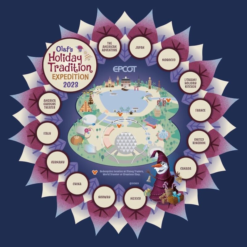 Do you want to join a snowman? Set off on an adventure with Olaf for his Holiday Traditions Expedition Scavenger Hunt, a fun way to explore World Showcase. Just purchase your map and stickers from select festival merchandise locations and seek out the “tradition” that Olaf has found in each pavilion. Whether or not you complete the quest, you can redeem your map at Creations Shop, Disney Traders or World Traveler at International Gateway for a special festival holiday keepsake. Redemption valid through Dec. 30 or while supplies last.