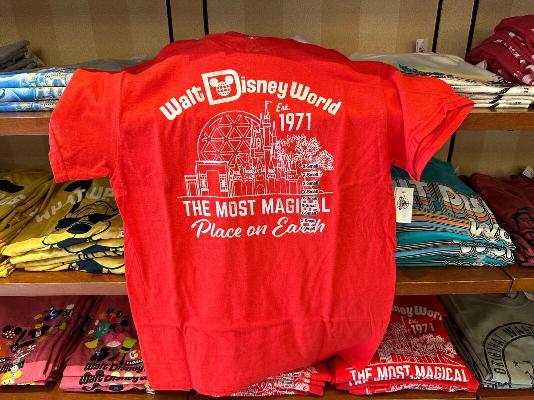 A new red Walt Disney World tee featuring park icons is now available. We picked it up in the Emporium at Magic Kingdom.