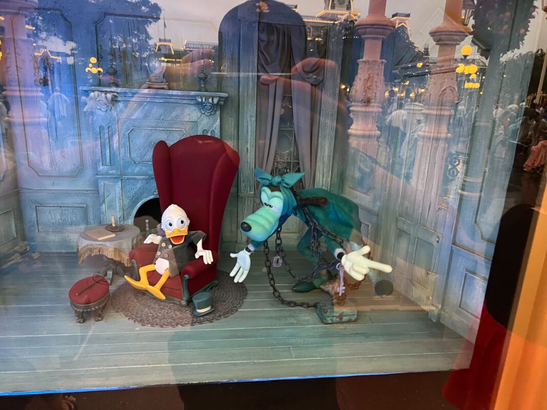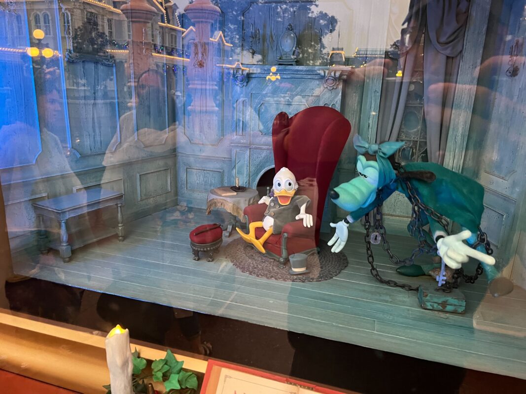 The next diorama depicts a scene in which Scrooge is visited by Marley’s ghost (Goofy).