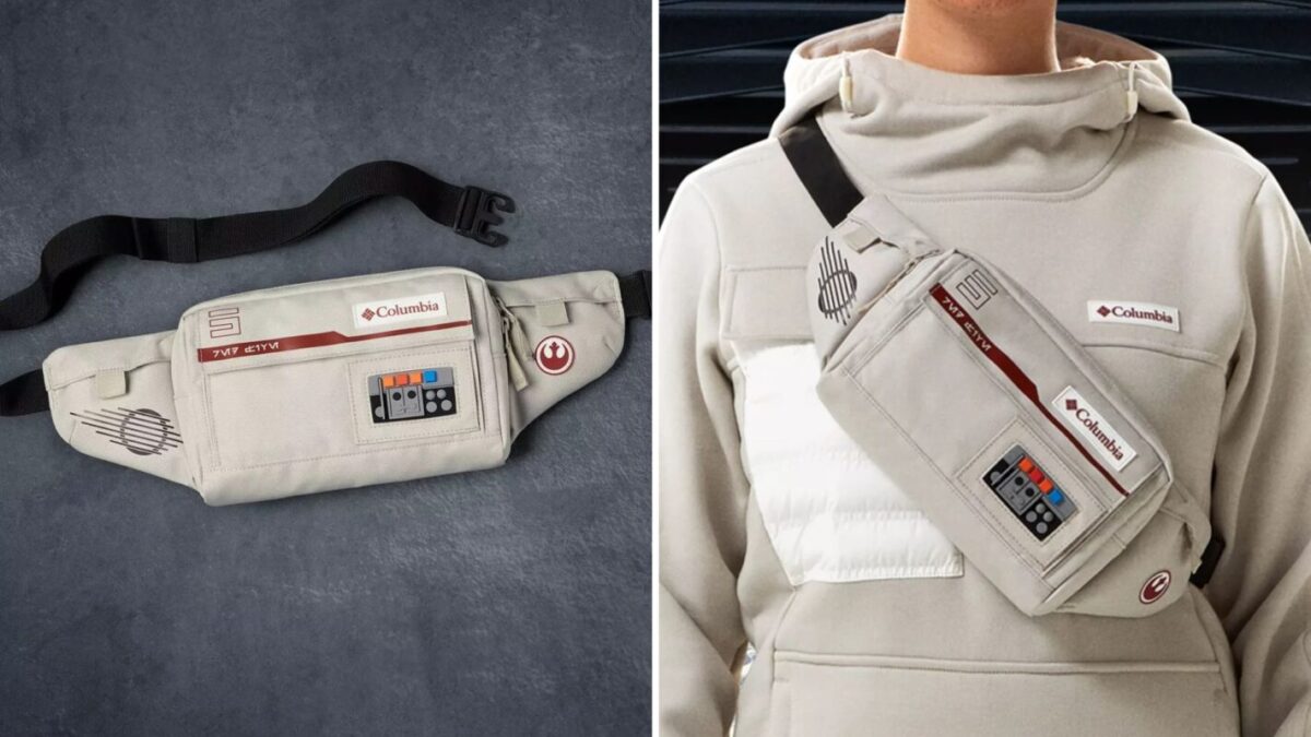 The crossbody bag is inspired by Luke’s white vest. It has an adjustable black strap, multifunctional pockets, and silicone comm link, Rebel, and Columbia logo patches.