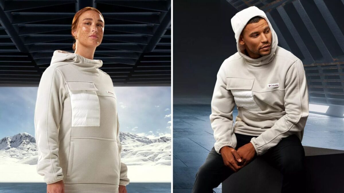 The utility chest pocket has flak-vest-inspired baffling. There is a zippered kangaroo pocket. It will come in men’s sizes XXS – XXL.