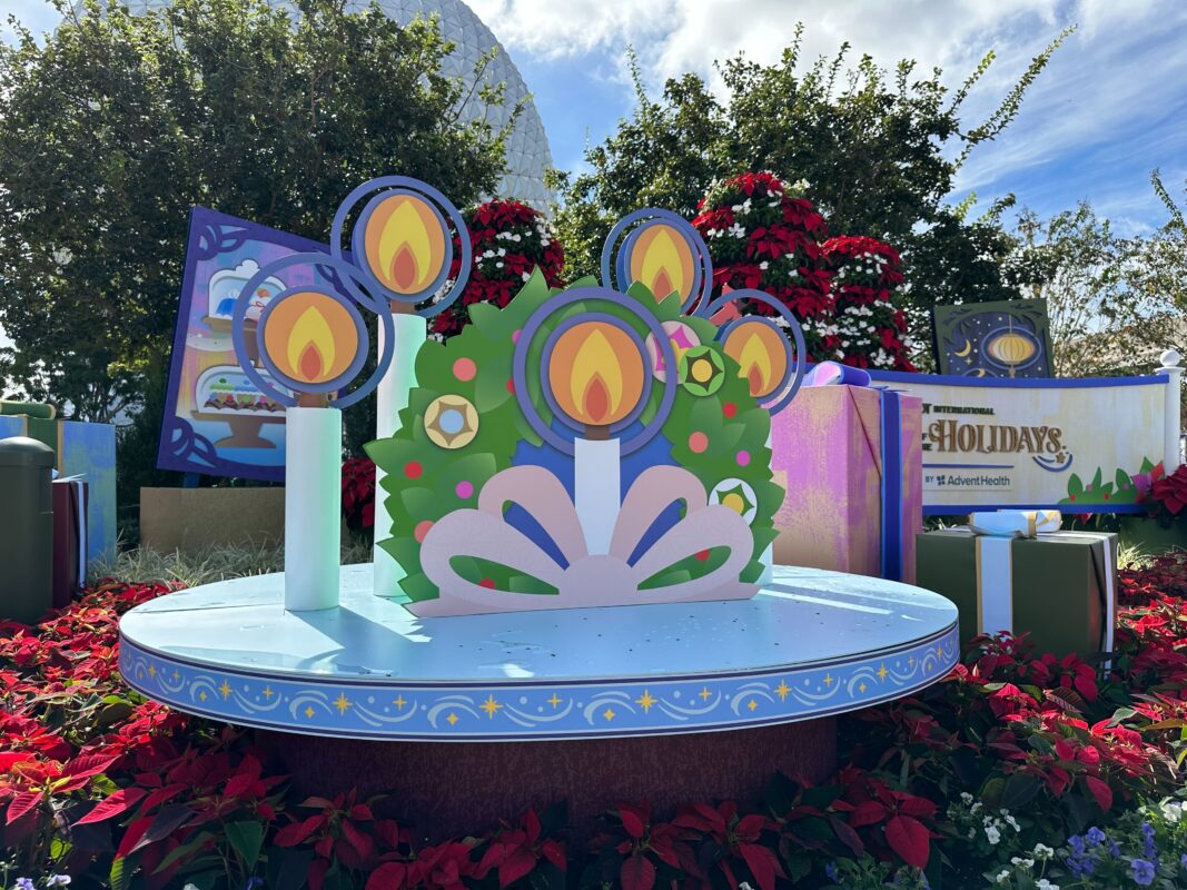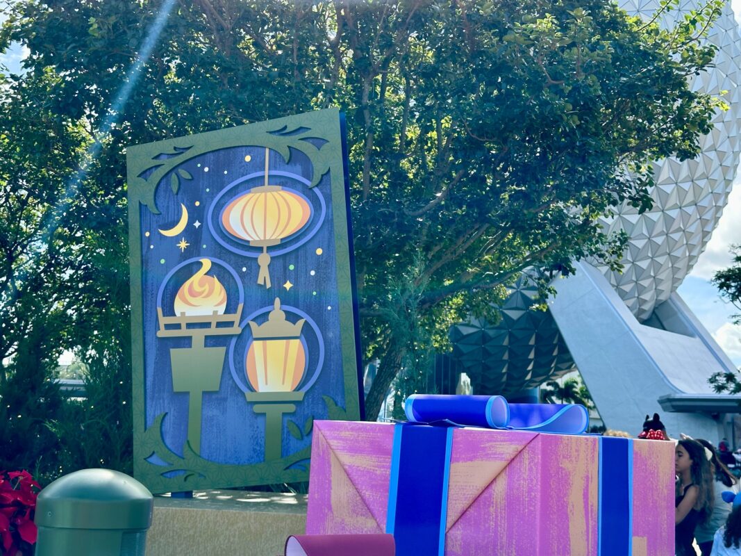Some of the nearby decorations represent different holidays and celebrations from around the world, which guests are able to learn more about thanks to Storytellers in World Showcase.