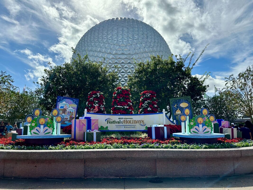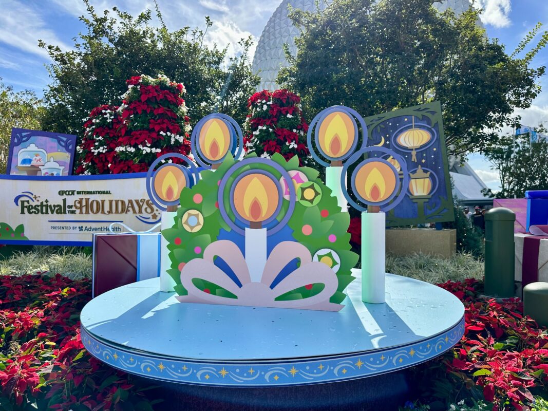 Other decorations for the festival are up throughout EPCOT. It begins on November 24 (the day after American Thanksgiving) and runs through December 30. In addition to the Storytellers, entertainment will include JOYFUL! A Celebration of the Season, which highlights the joy of Christmas and Kwanzaa through Gospel, R&B, and holiday songs. Guests will be able to enjoy food from various Holiday Kitchens. Living With the Land has been transformed with holiday lights and decorations. And the famous Candlelight Processional will return with a lineup of celebrity narrators that includes Simu Liu, Brendan Fraser, Eva Longoria, Jordan Fisher, and Audra McDonald. Candlelight Processional dining packages are available for various restaurants.