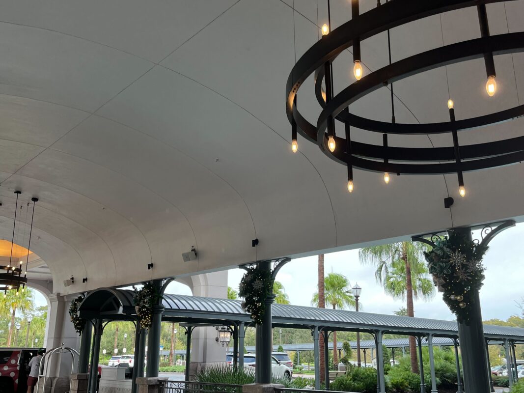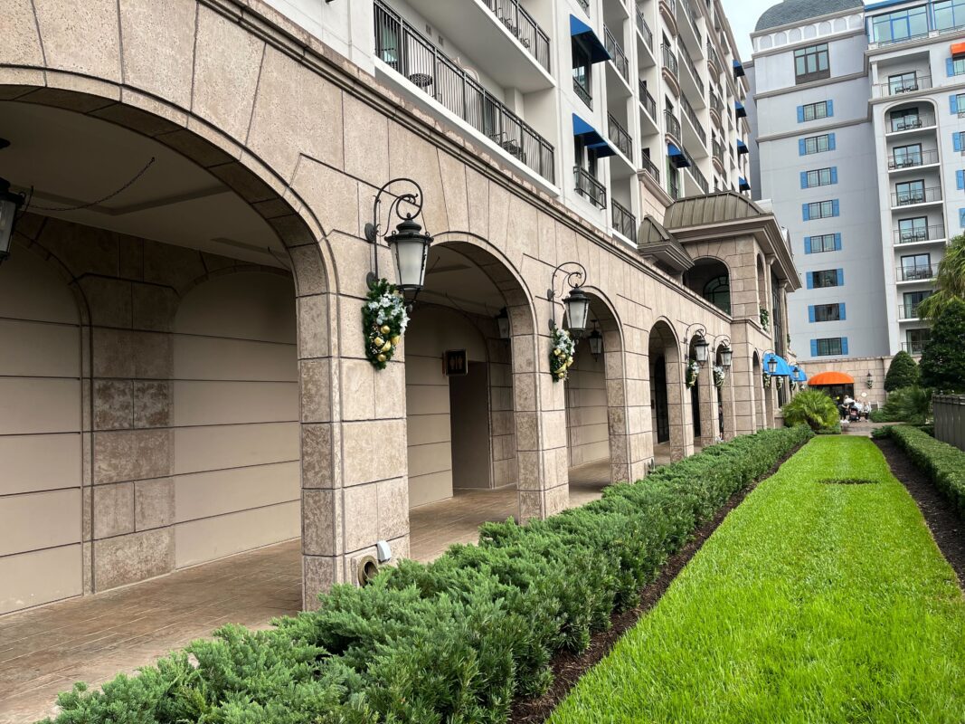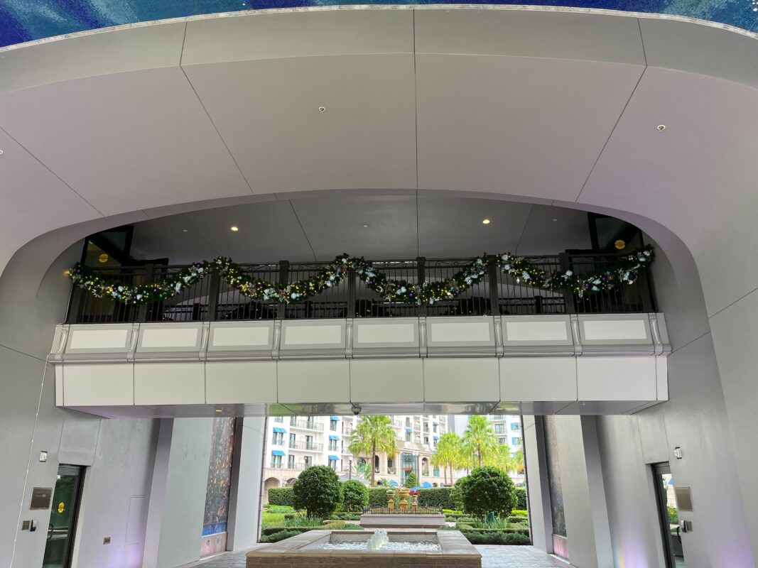 Disney’s Riviera Resort is decked out with garlands, wreaths, and more for the 2023 holiday season at Walt Disney World.