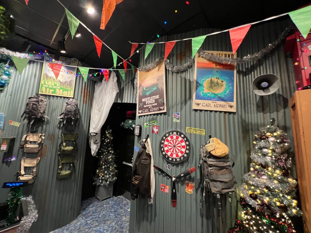 There are a lot of Easter eggs hidden about for Universal fans and plenty of holiday cheer. The lights and garland look great among Earl’s chaos.