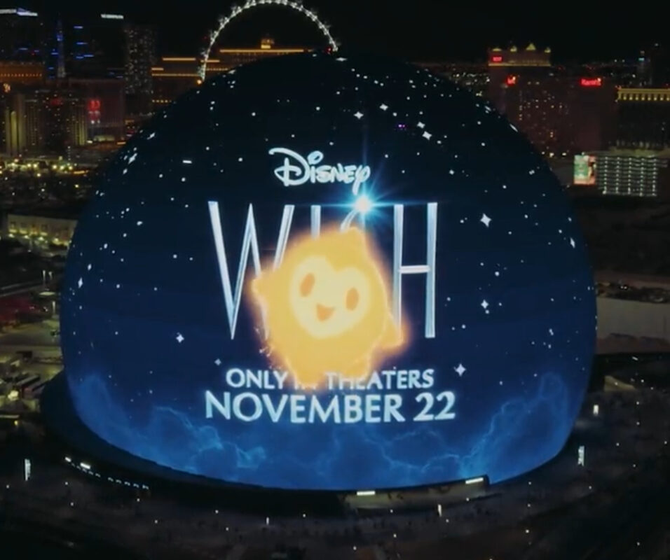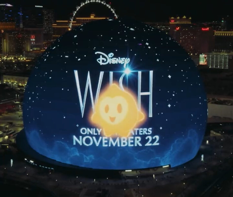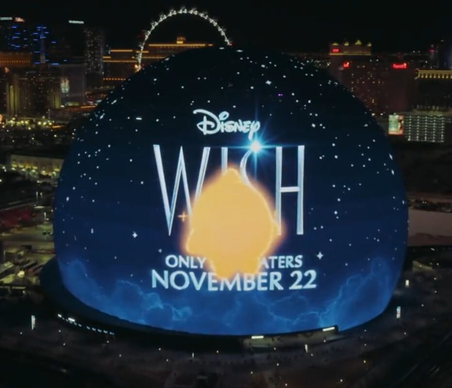 The Sphere entertainment venue in Las Vegas has garnered international attention since opening earlier this year thanks to its unique architecture and innovative concept. The exterior of the 366-foot structure is wrapped in nearly 600,000 square feet of LED screens that can play immersive videos and advertisements; The Walt Disney Company recently used Sphere to advertise the release of “The Marvels,” and it’s again used the venue to promote “Wish,” the newest Walt Disney Animation Studios feature that’s set to release on November 22.
