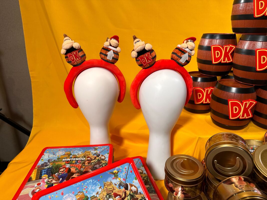 Merchandise sneak peeks included a Donkey Kong and Dixie Kong headband, with both characters in barrels.