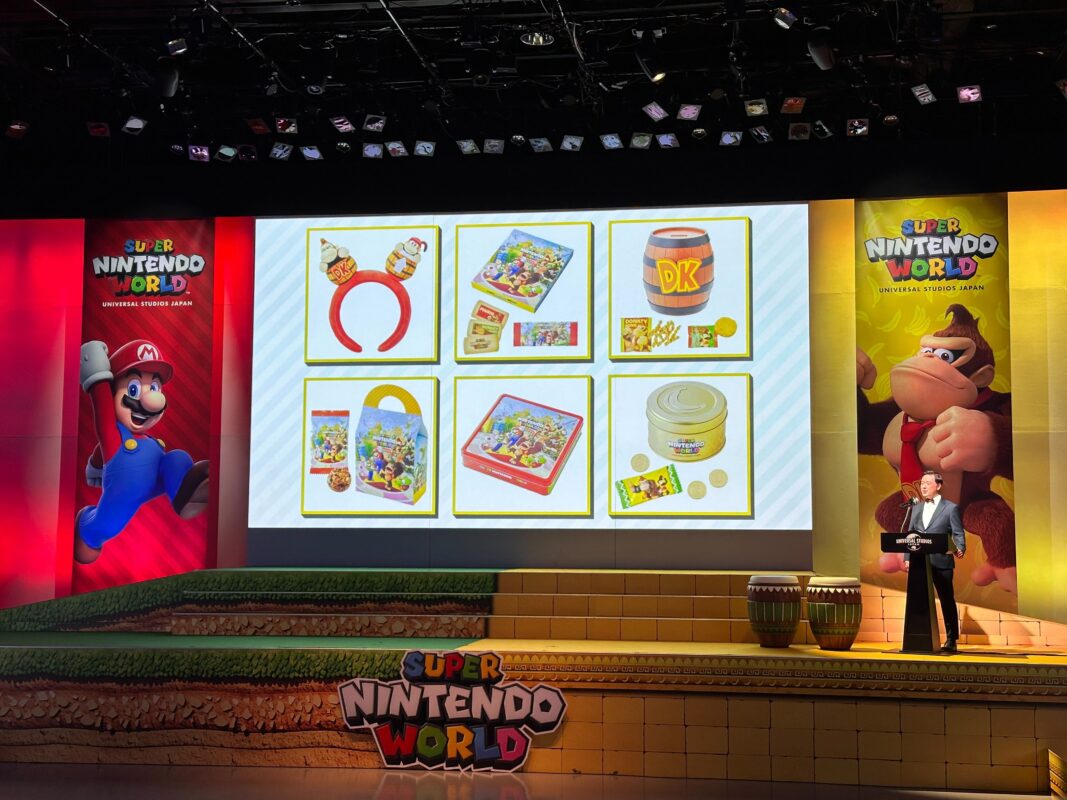 During today’s media event announcing the opening window for Donkey Kong Country, a new expansion coming to Super Nintendo World at Universal Studios Japan, attendees got a look at exclusive new merchandise. Also revealed at the media event, new Donkey Kong and Diddy Kong Power-Up Bands are coming to Super Nintendo World.